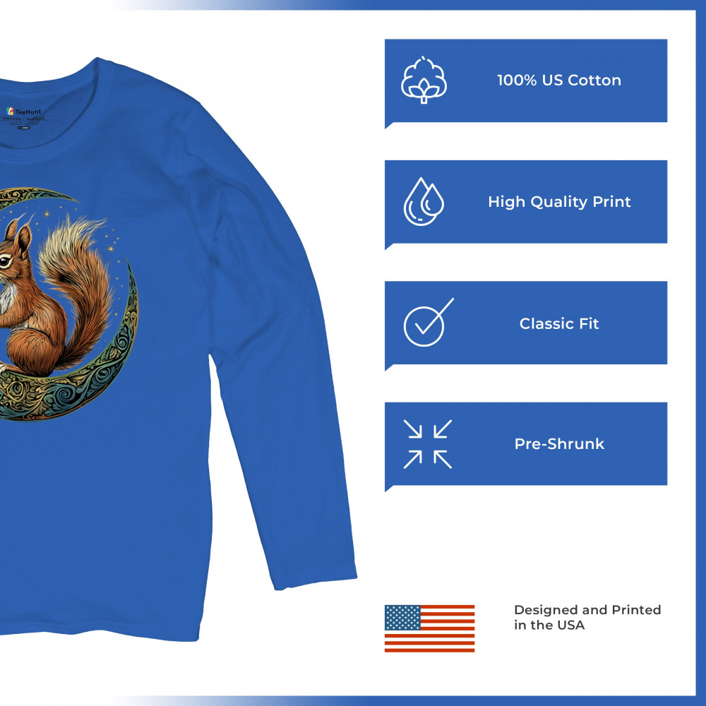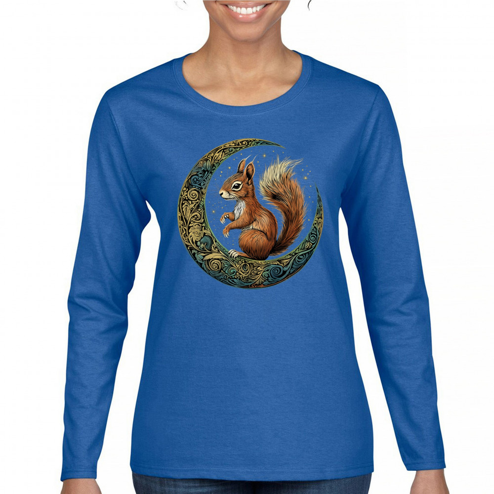 Celebrate agility, awareness, and forest wisdom with this magical red squirrel design. Nestled in a green-gold Celtic crescent moon and backed by a starry cosmic sky, this piece merges natural energy with tribal patterns and celestial wonder. A unique design for animal spirit believers, forest wanderers, and fantasy nature fans.