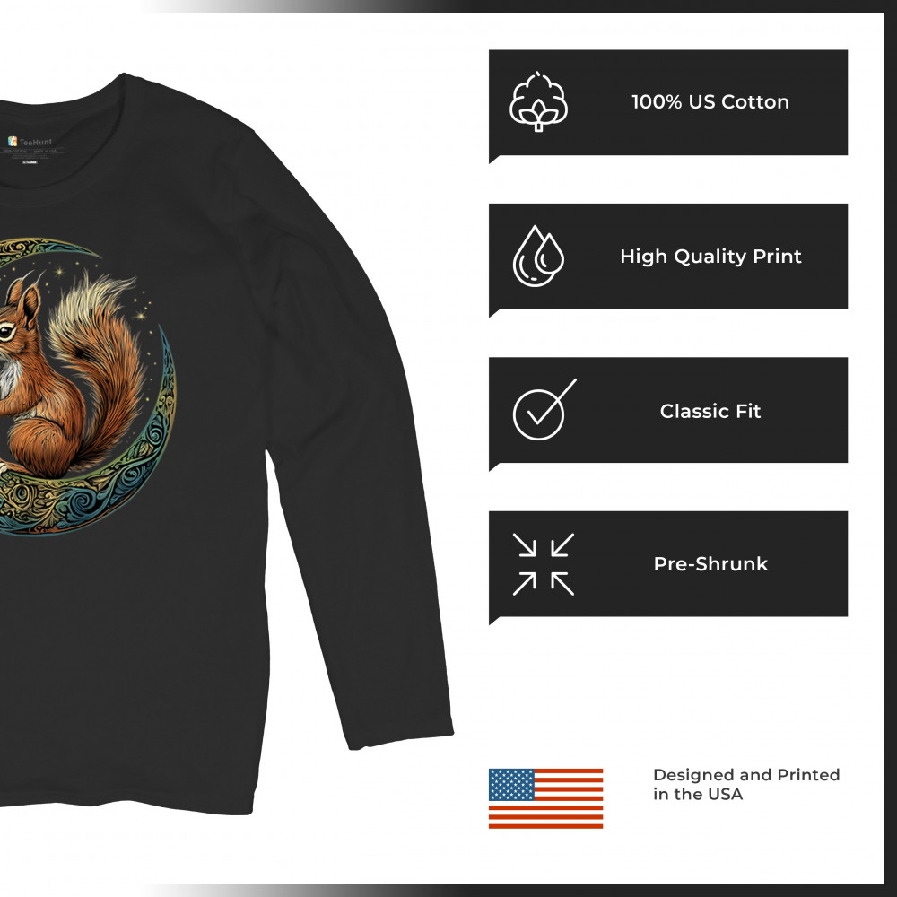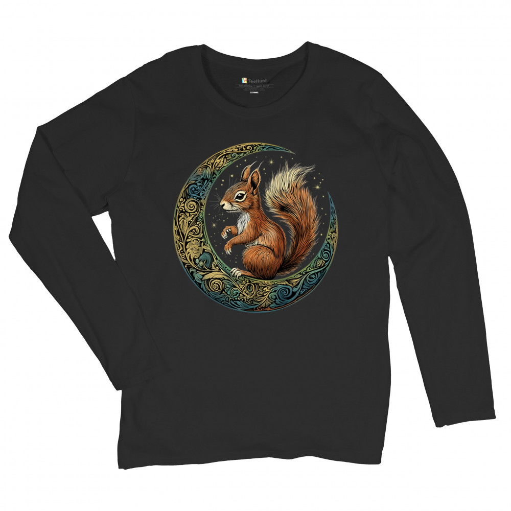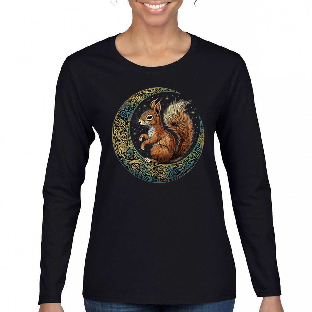 CELTIC MOON SQUIRREL women's long sleeve t-shirt mystic critter spiritual lunar black