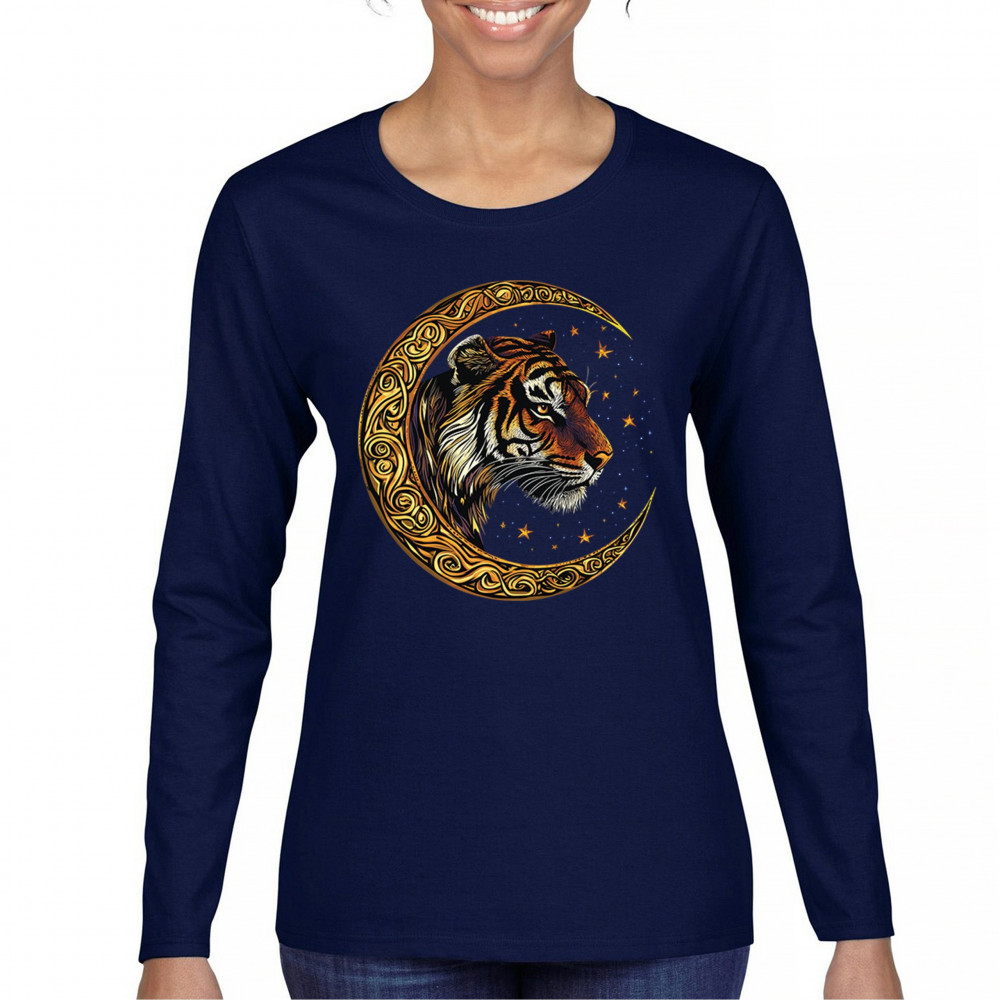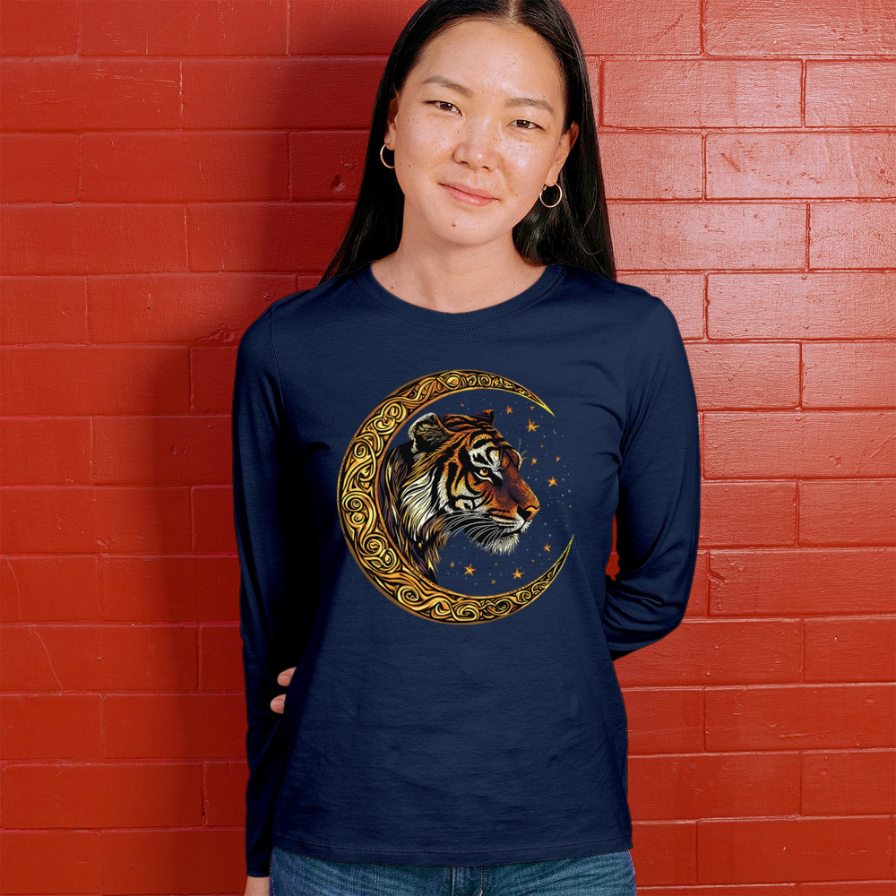 Bold tiger design in Celtic moon with cosmic sky. Symbol of strength, instinct, and jungle mysticism. Great for animal lovers and fantasy fans.