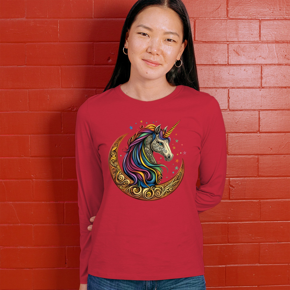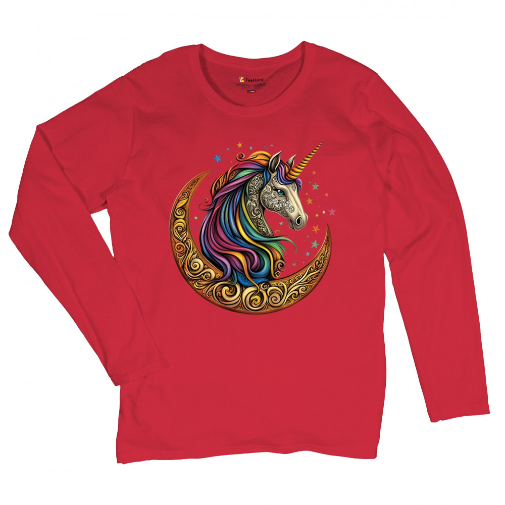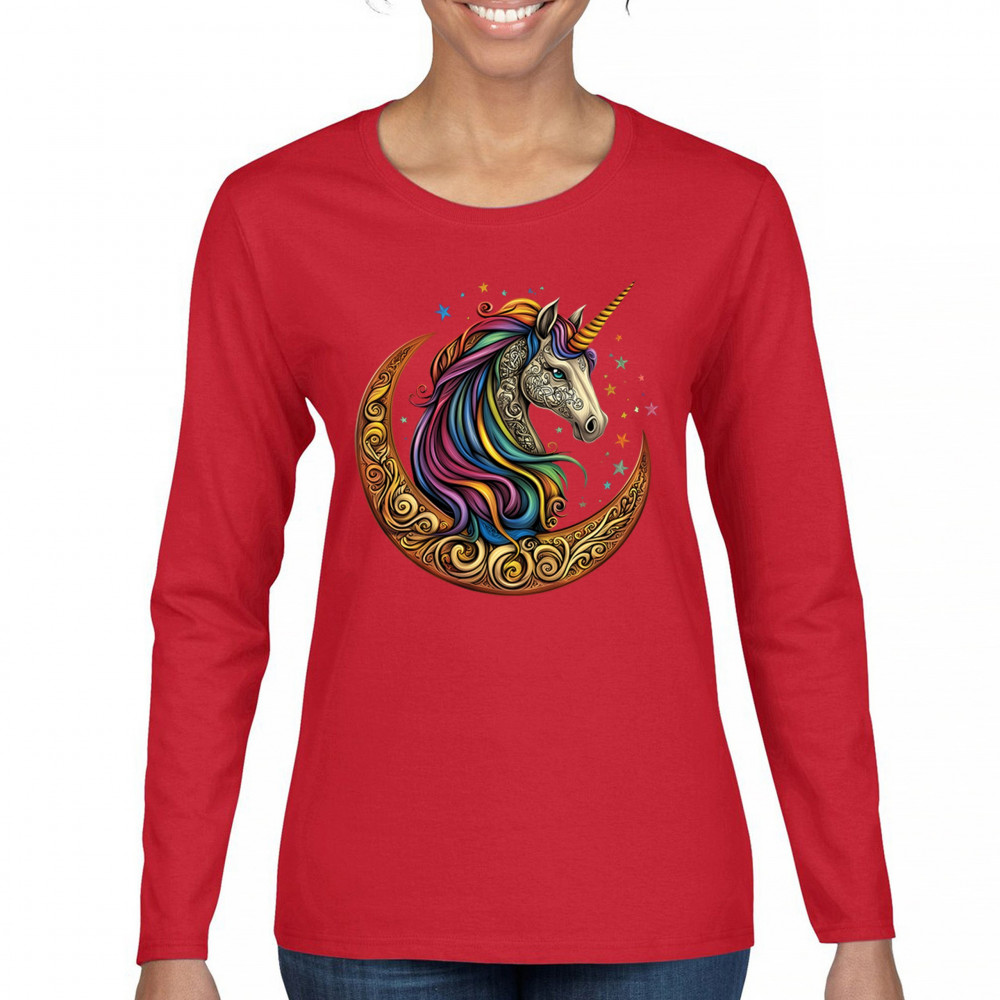 Rainbow-maned unicorn in golden Celtic moon design—perfect for fantasy lovers, dreamers, and unicorn fans who believe in magic and spirit.