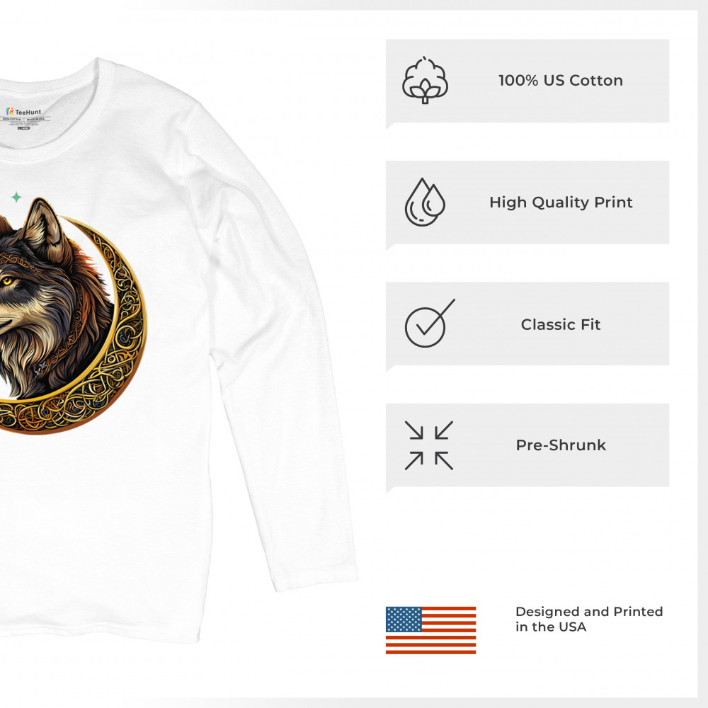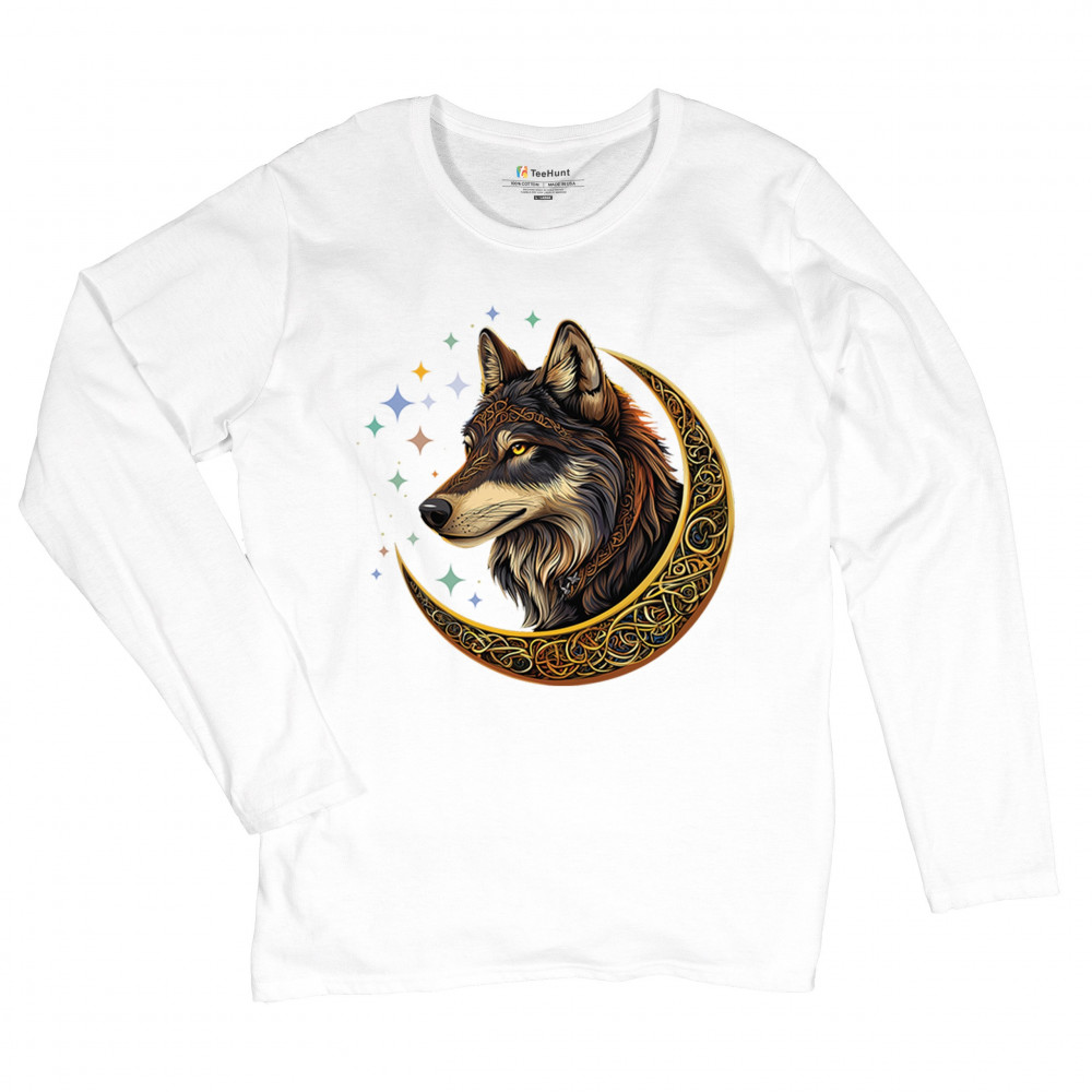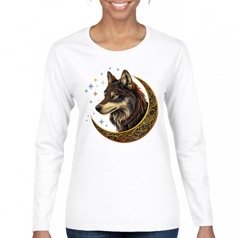Celtic wolf design in a glowing crescent moon. Symbolizes loyalty, mysticism, and wild energy. Great for fantasy fans and spirit animal seekers.