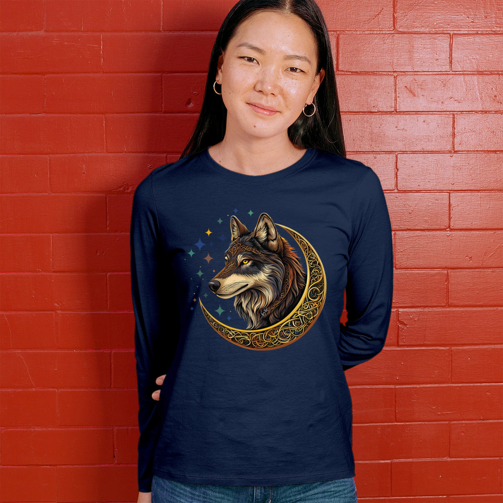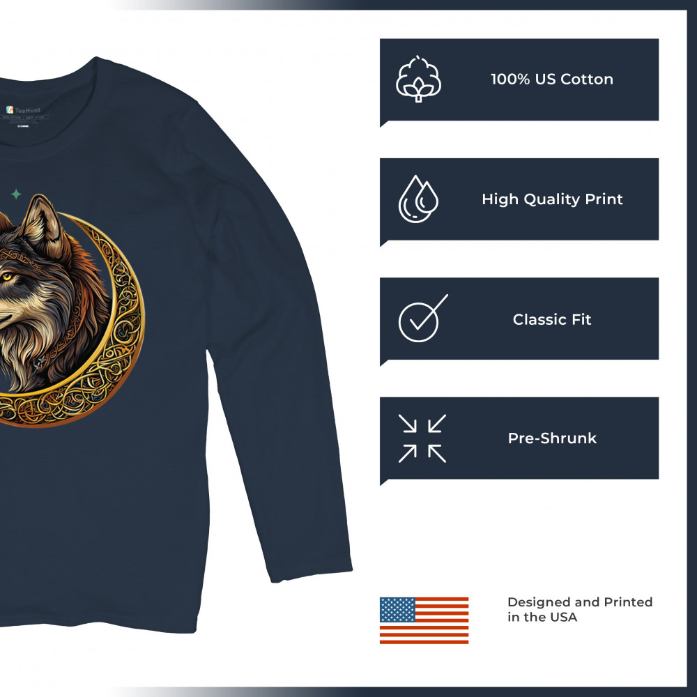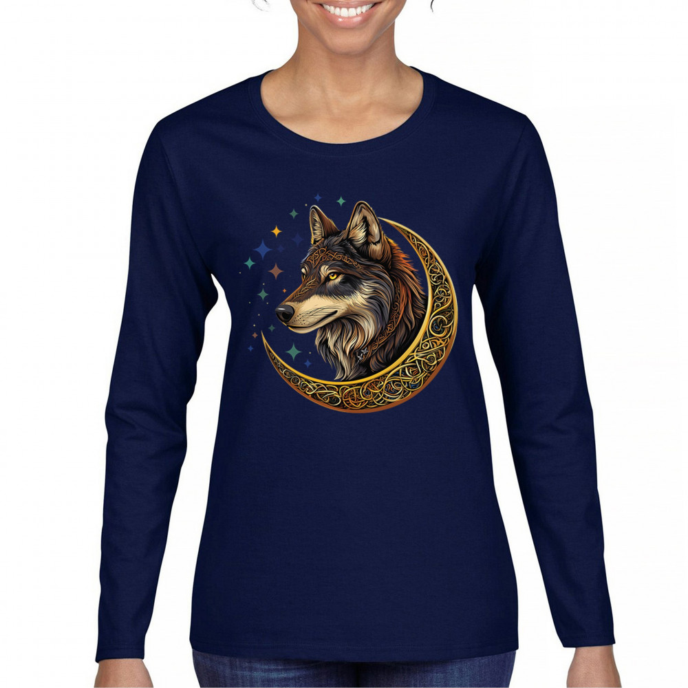 Celtic wolf design in a glowing crescent moon. Symbolizes loyalty, mysticism, and wild energy. Great for fantasy fans and spirit animal seekers.