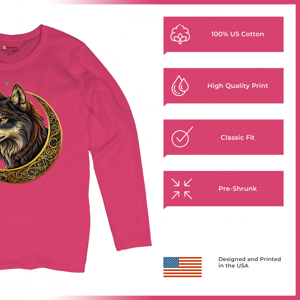 Celtic wolf design in a glowing crescent moon. Symbolizes loyalty, mysticism, and wild energy. Great for fantasy fans and spirit animal seekers.