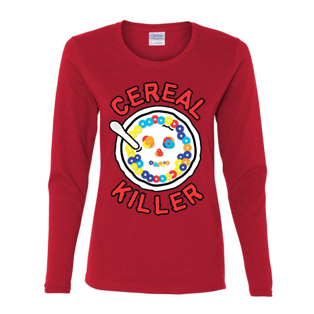 CEREAL KILLER women's long sleeve tee funny breakfast morning meal serial killer red