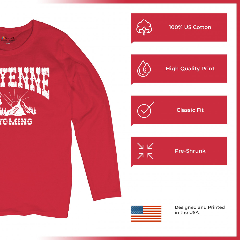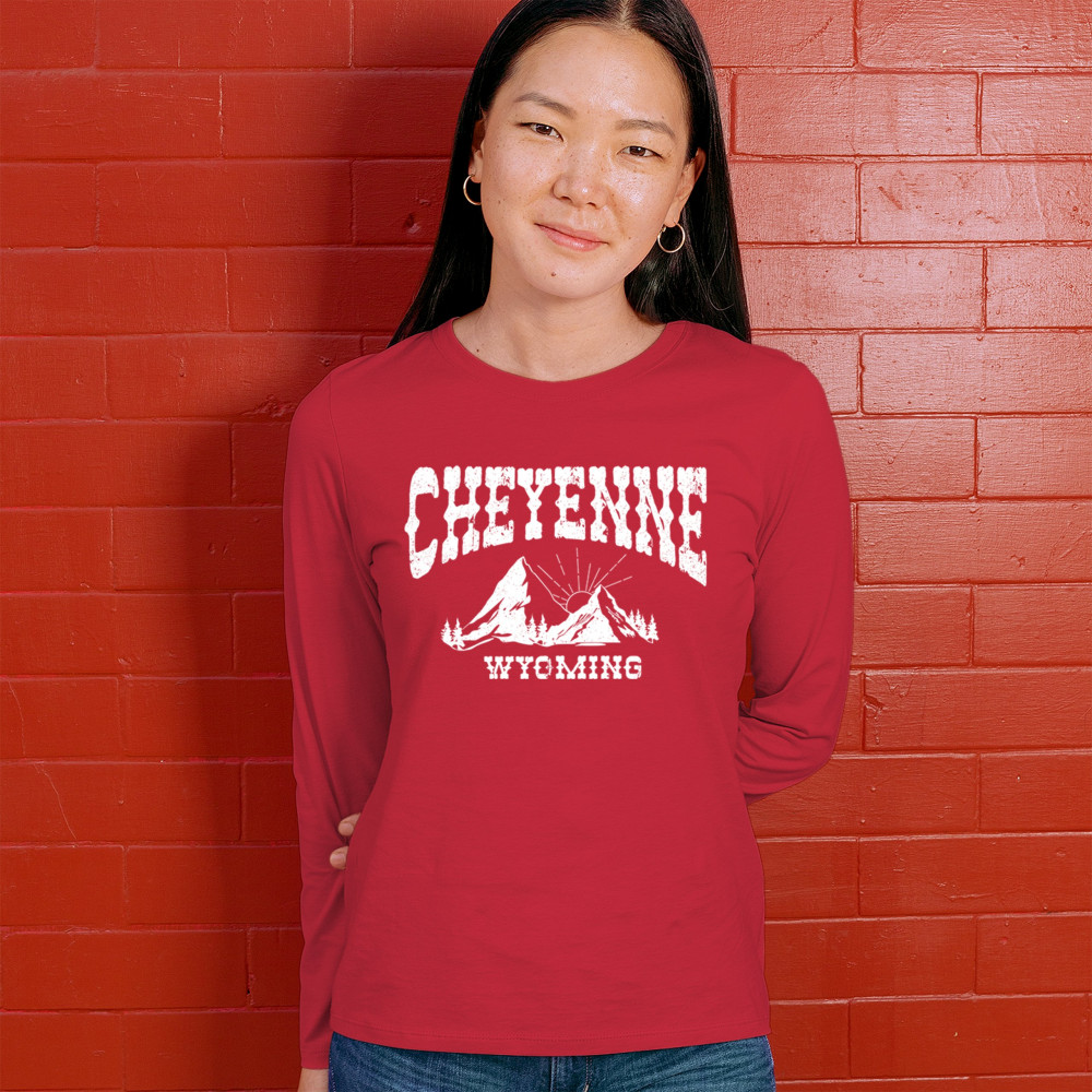 Vintage Cheyenne Wyoming design with mountain sunrise for outdoor lovers and locals. Perfect for travel, hiking, or Western pride.