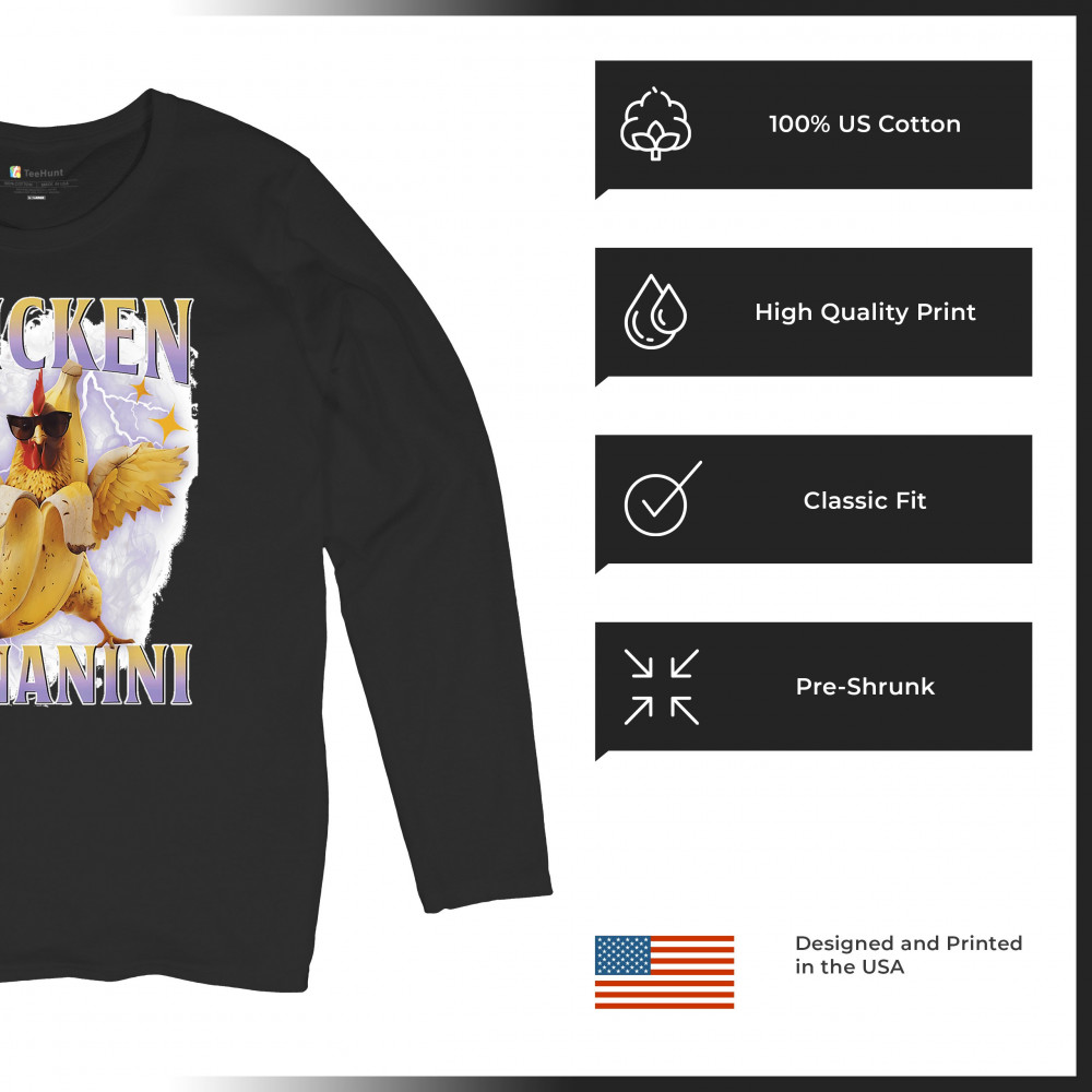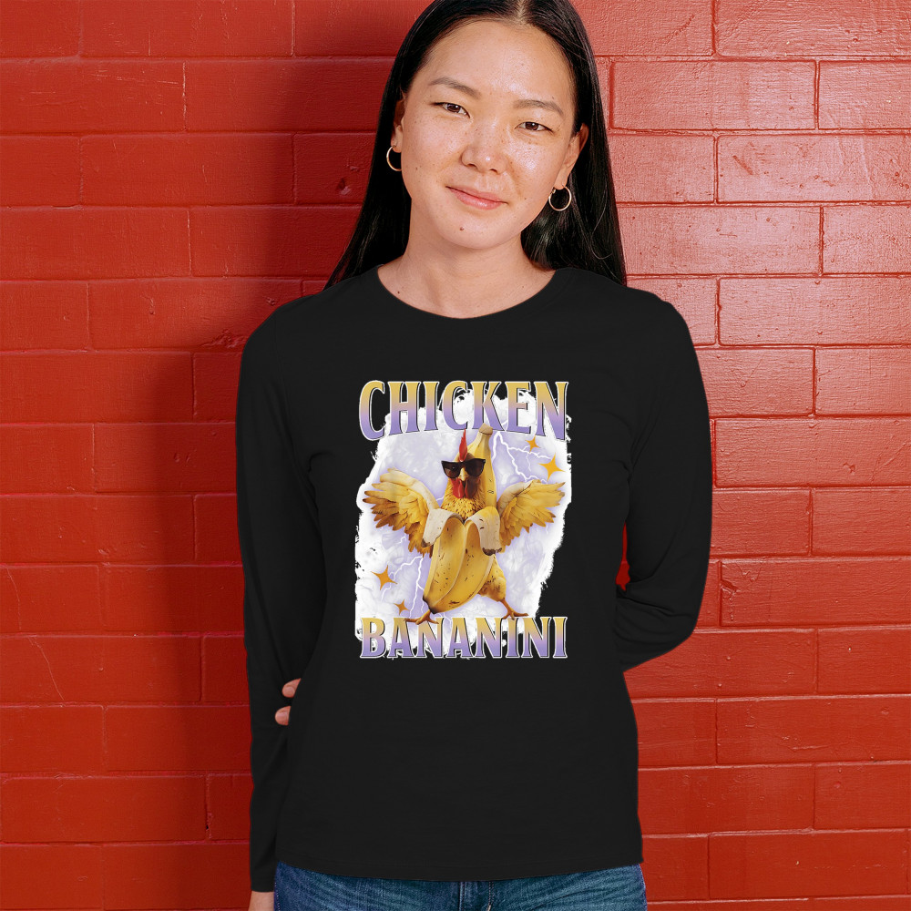 Chicken Bananini is meme absurdity with extra peel. Featuring a chicken emerging from a banana and rocking shades, this design blends cursed-core fashion, viral animal humor, Gen Z brainrot, and TikTok-style chaos. A must-have for fans of ironic mashups, surreal creatures, and internet-fueled nonsense.