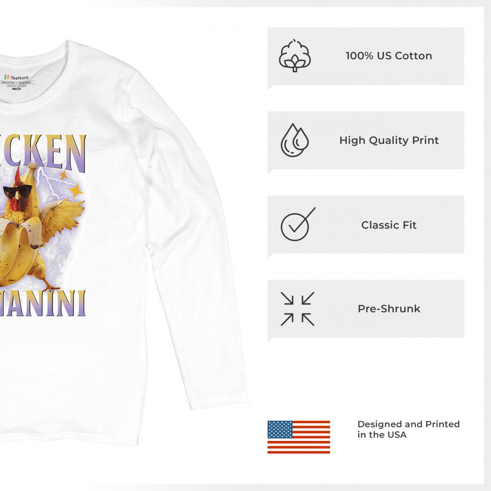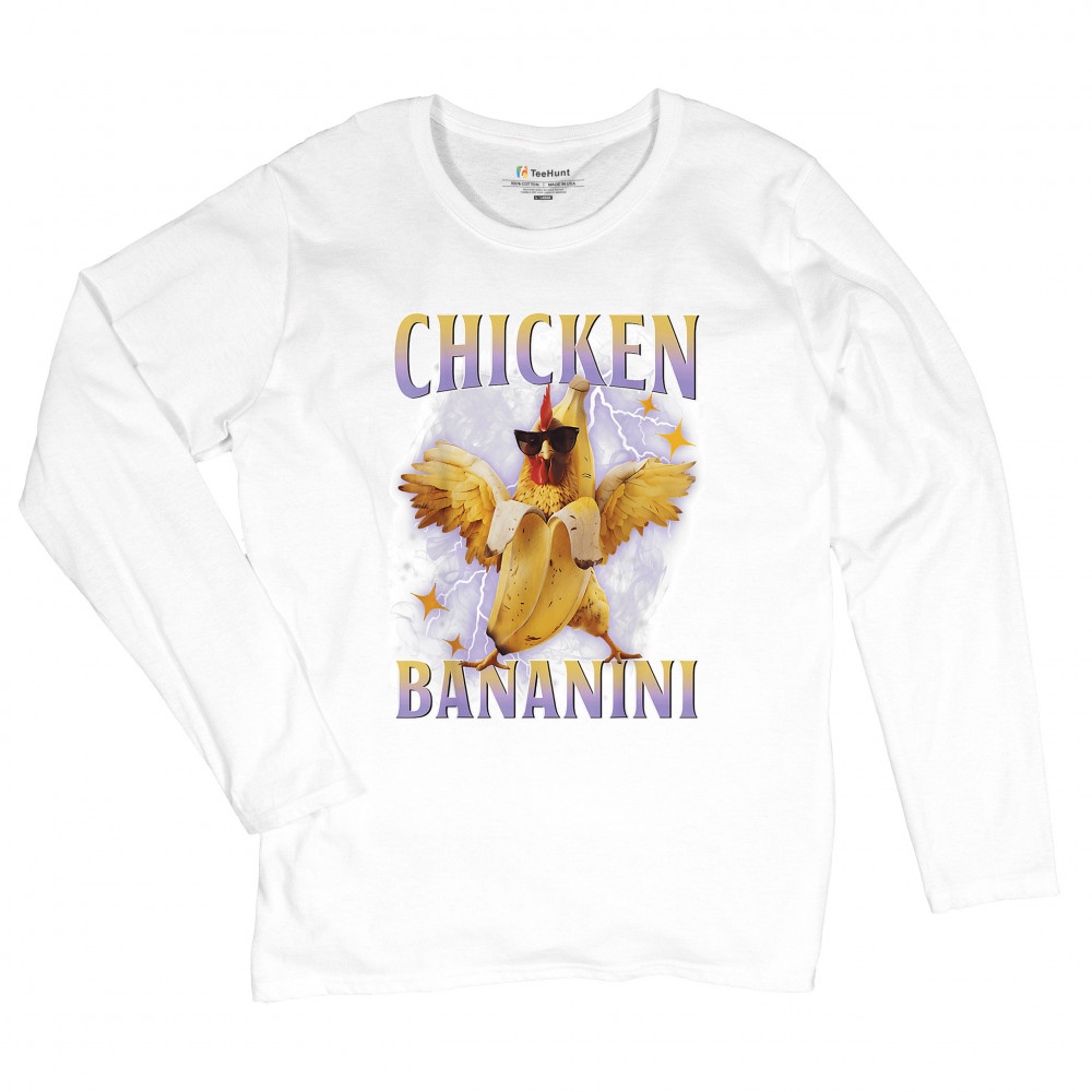 Chicken Bananini is meme absurdity with extra peel. Featuring a chicken emerging from a banana and rocking shades, this design blends cursed-core fashion, viral animal humor, Gen Z brainrot, and TikTok-style chaos. A must-have for fans of ironic mashups, surreal creatures, and internet-fueled nonsense.