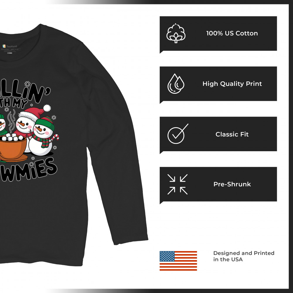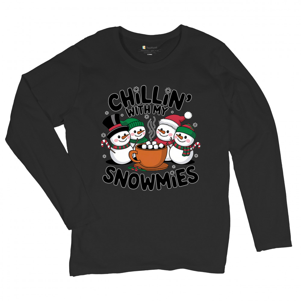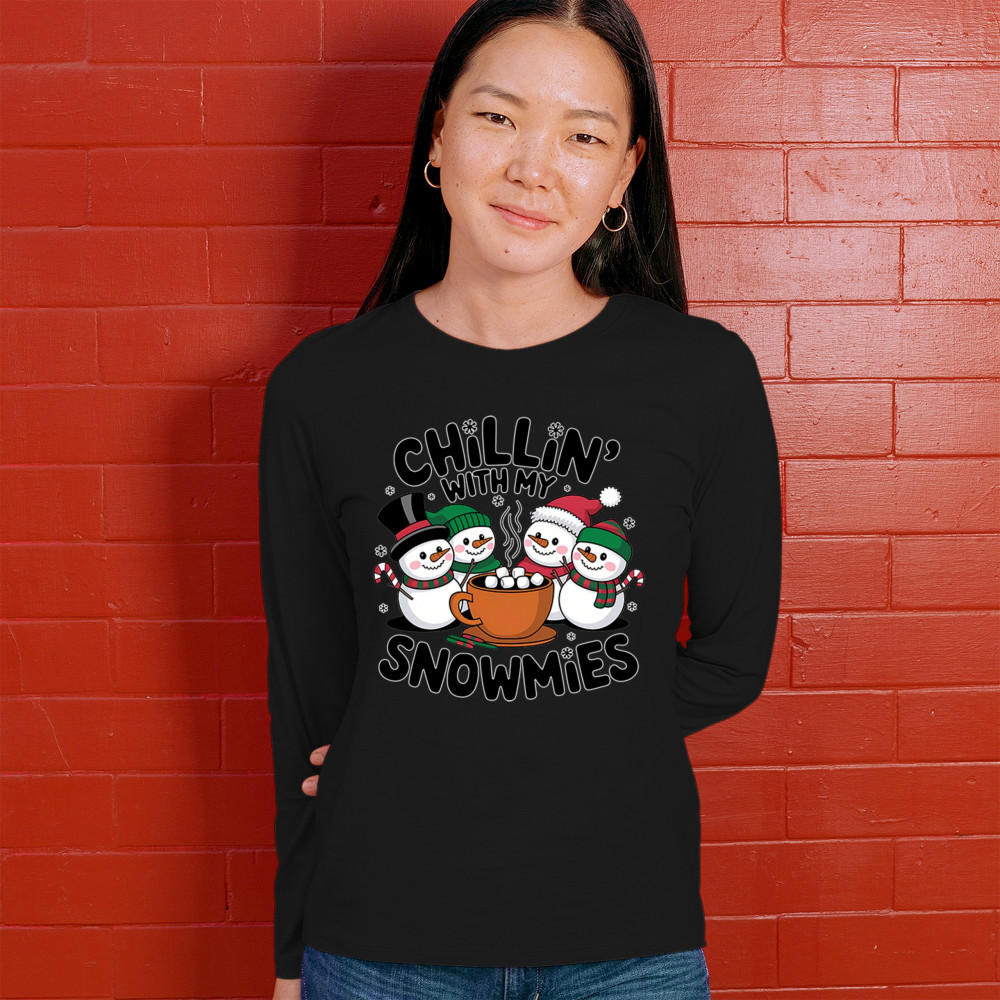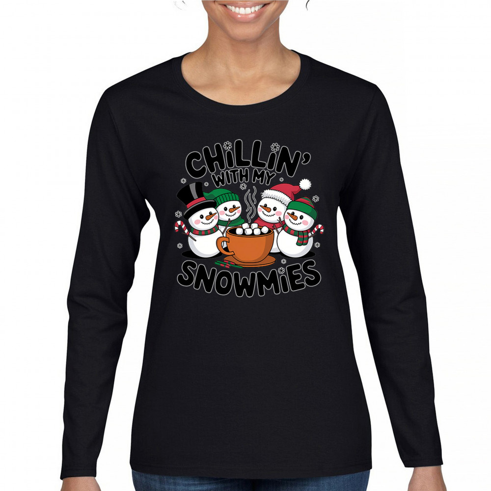CHILLIN' WITH MY SNOWMIES women's long sleeve t-shirt christmas snowman festive black