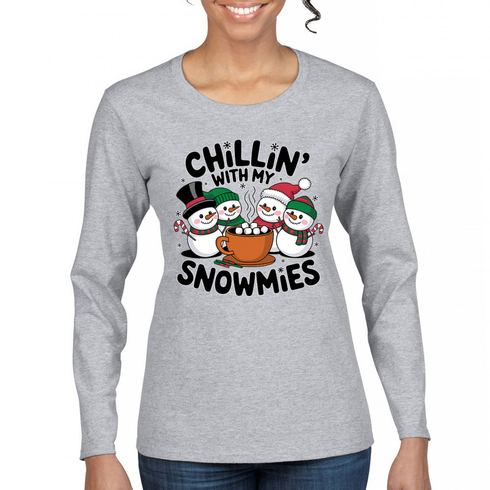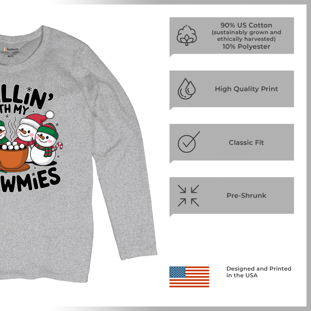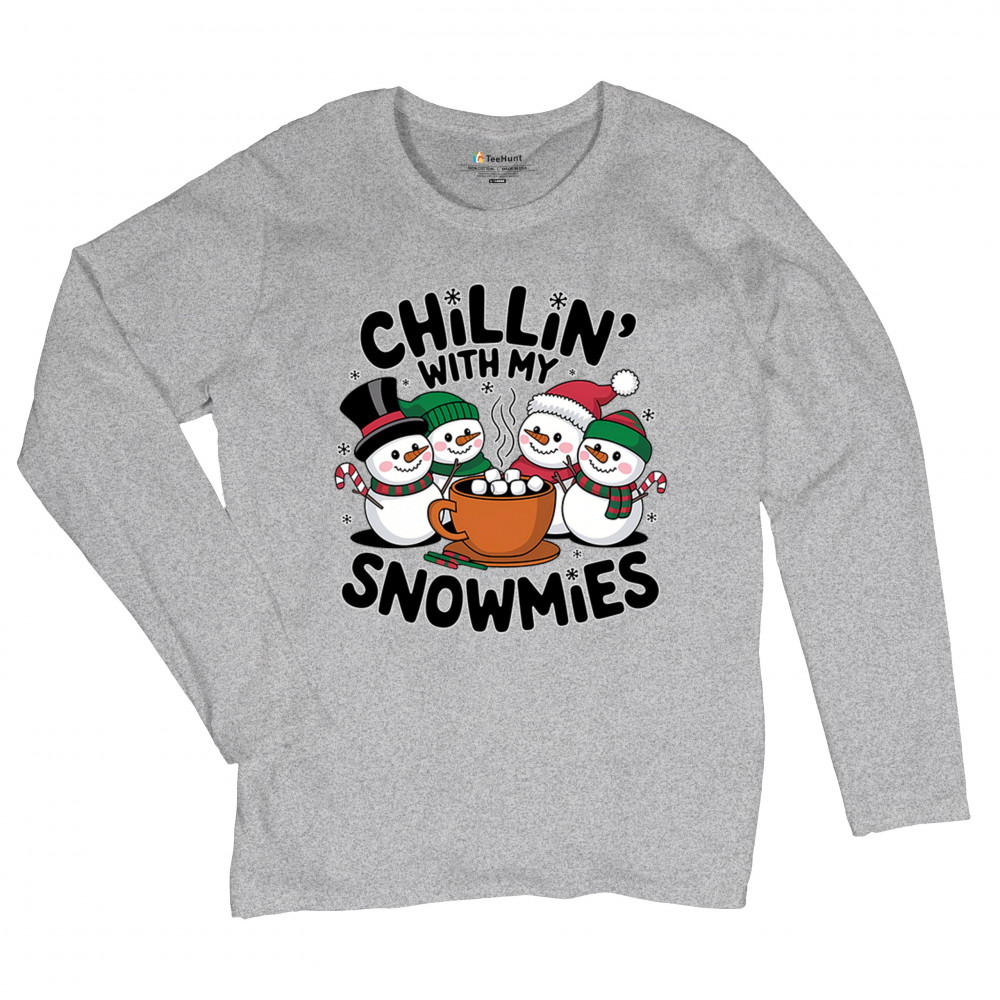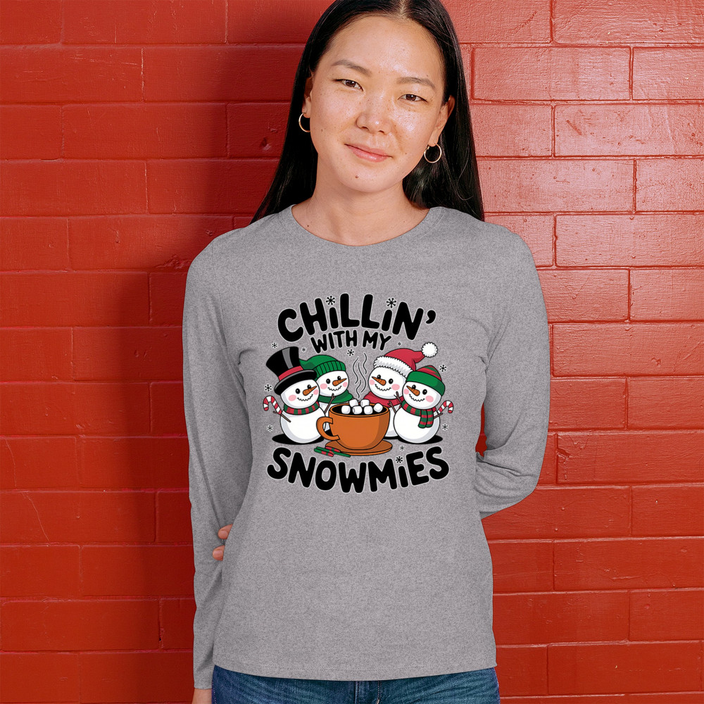 A cute and cheerful winter design showing happy snowmen sharing hot cocoa, perfect for Christmas gatherings, holiday events, seasonal photos, white-elephant gifting, festive family nights, winter celebrations, cozy weekend vibes, and fans of playful holiday humor. A fun graphic for anyone who loves bright and friendly Christmas styles.