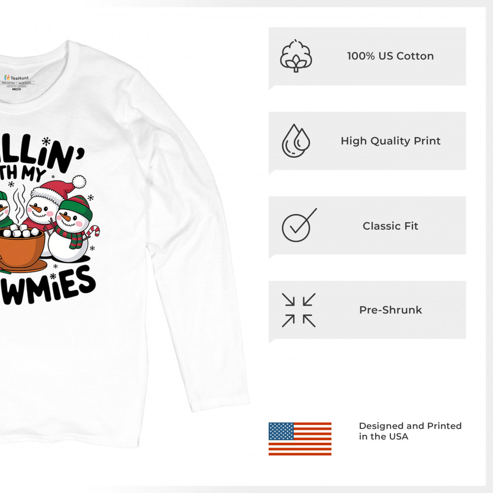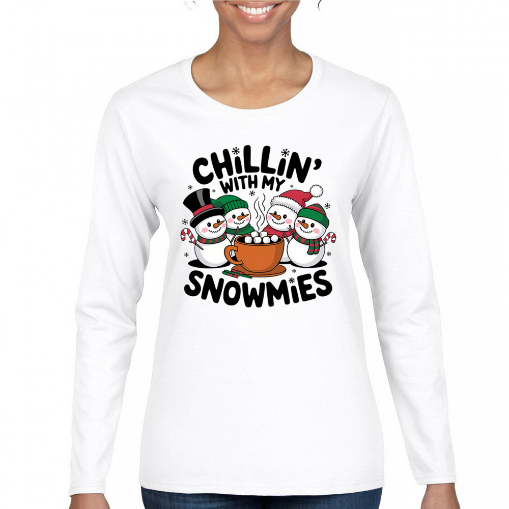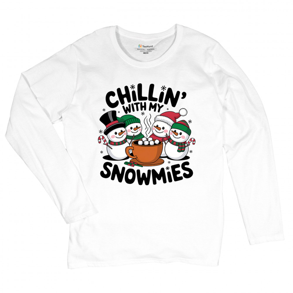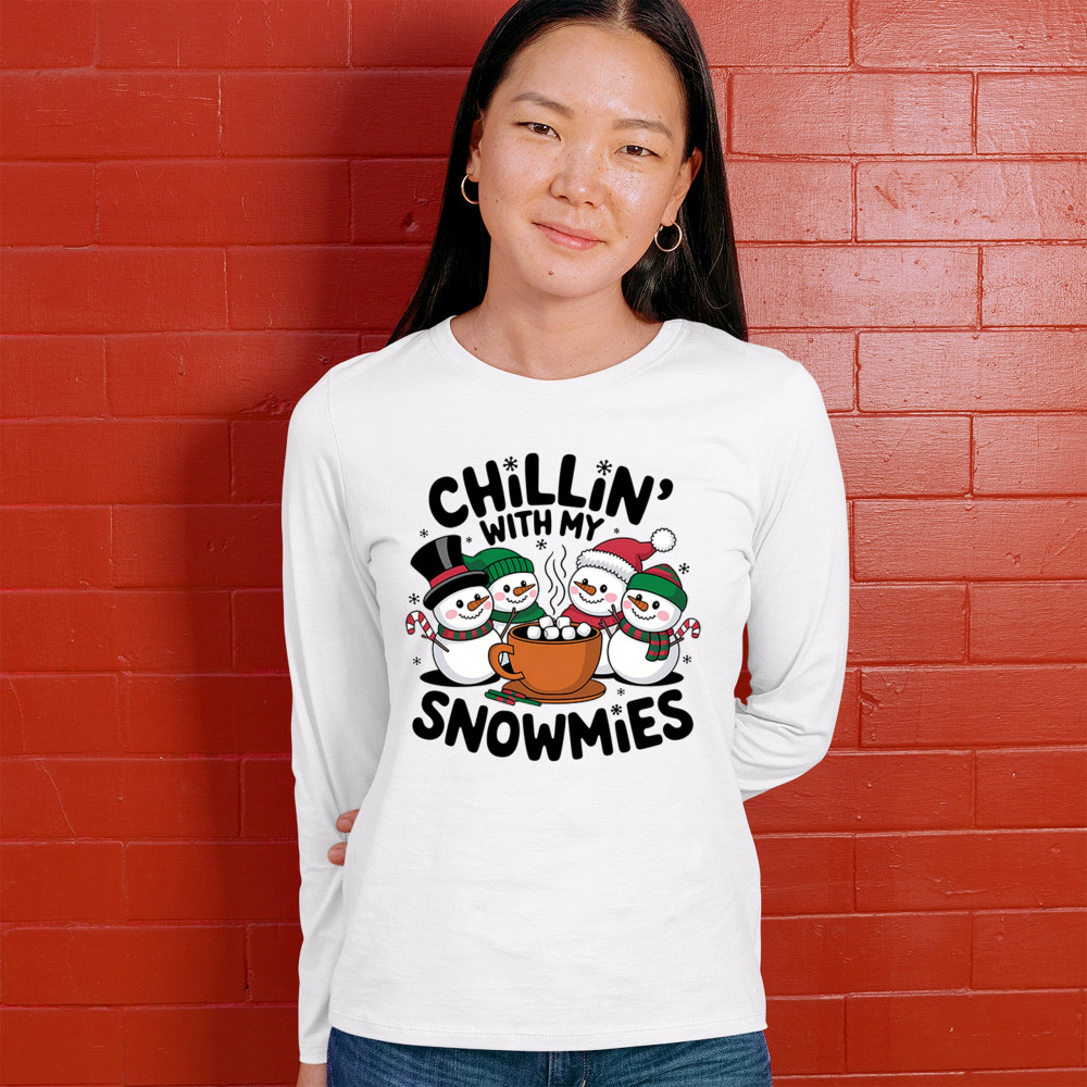 A cute and cheerful winter design showing happy snowmen sharing hot cocoa, perfect for Christmas gatherings, holiday events, seasonal photos, white-elephant gifting, festive family nights, winter celebrations, cozy weekend vibes, and fans of playful holiday humor. A fun graphic for anyone who loves bright and friendly Christmas styles.