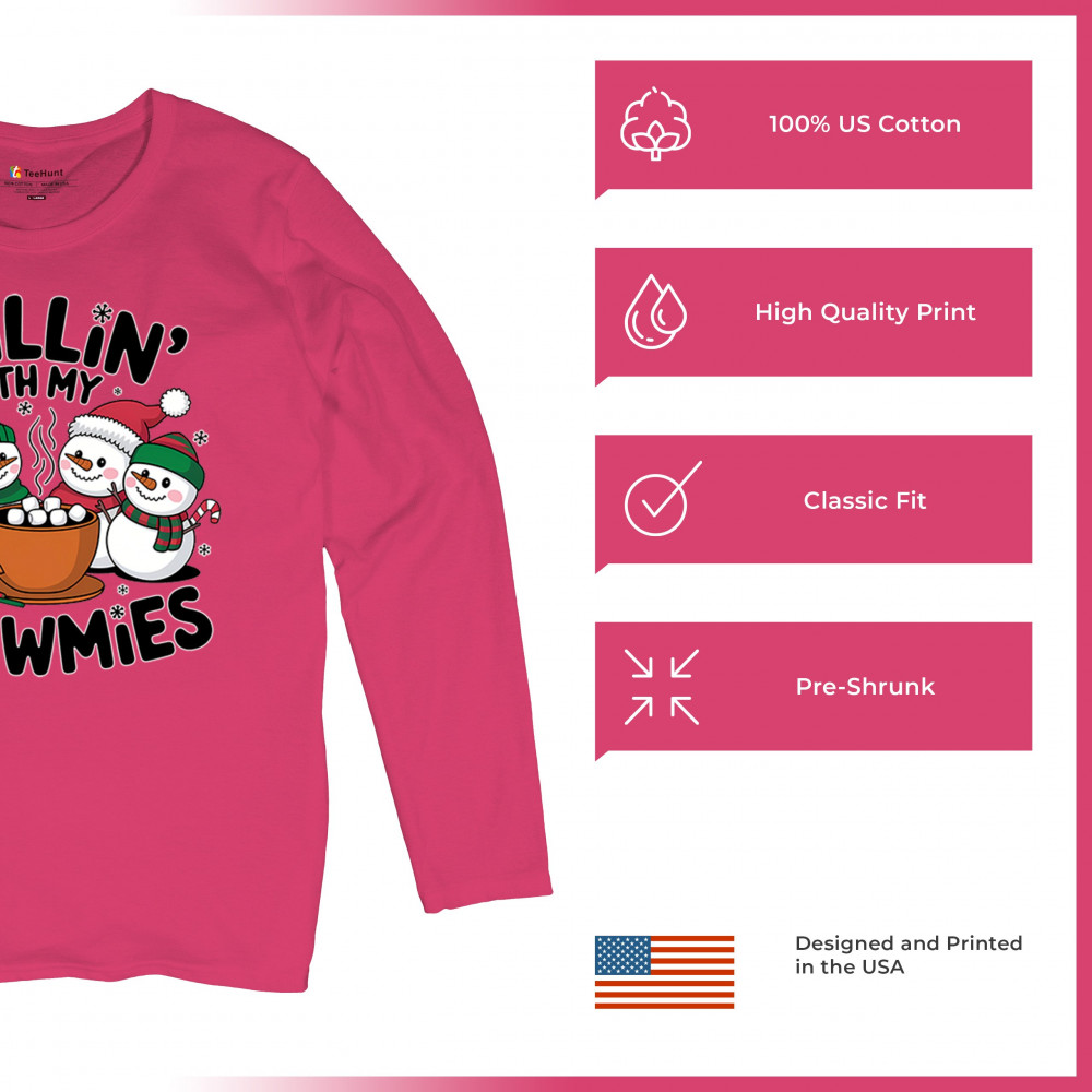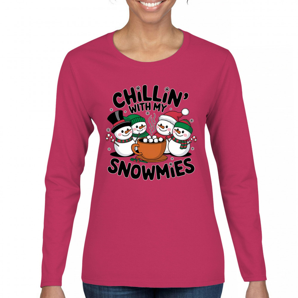 A cute and cheerful winter design showing happy snowmen sharing hot cocoa, perfect for Christmas gatherings, holiday events, seasonal photos, white-elephant gifting, festive family nights, winter celebrations, cozy weekend vibes, and fans of playful holiday humor. A fun graphic for anyone who loves bright and friendly Christmas styles.