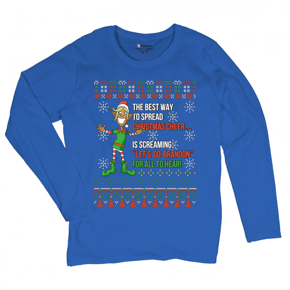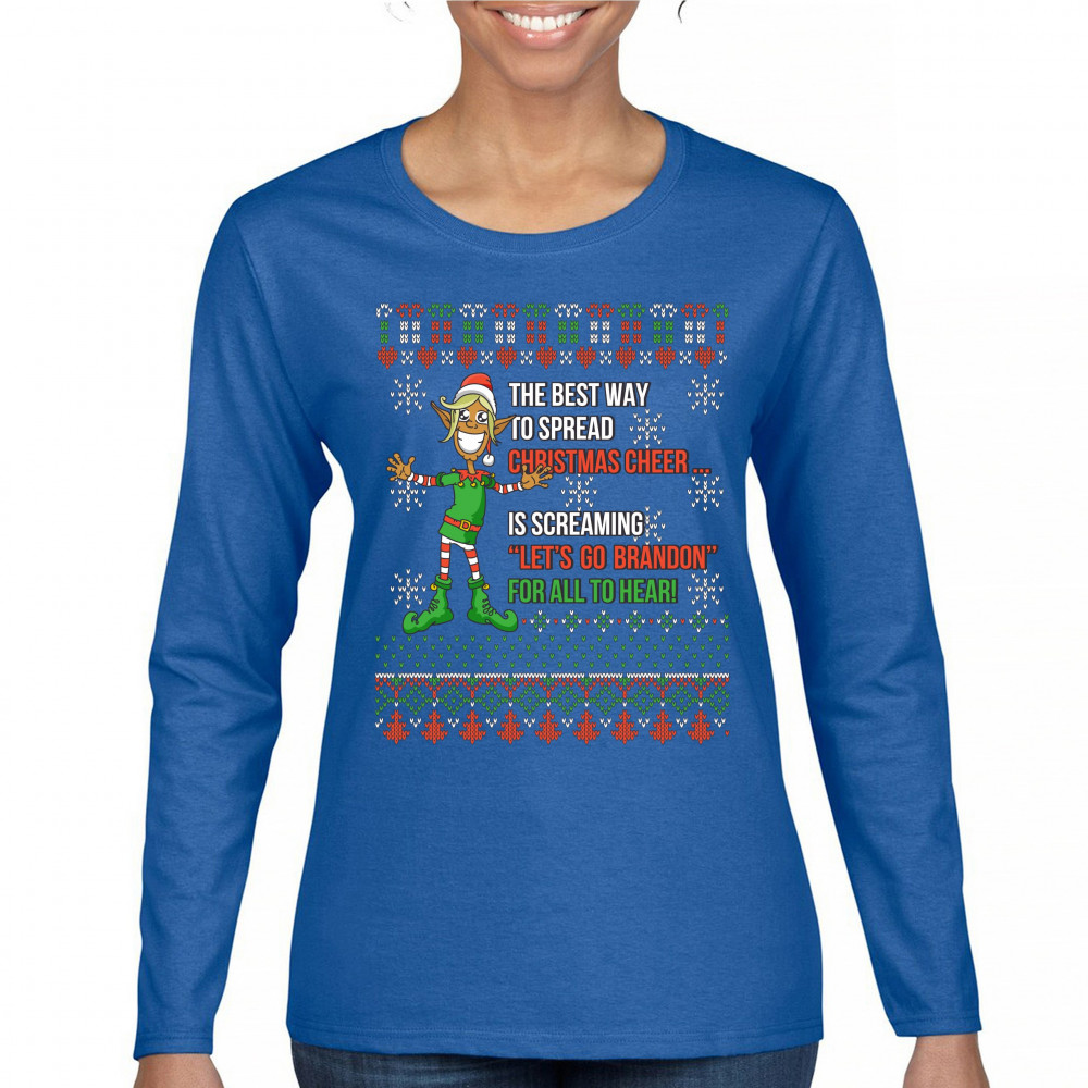 CHRISTMAS CHEER LET'S GO BRANDON women's long sleeve t-shirt ugly sweater xmas royal blue