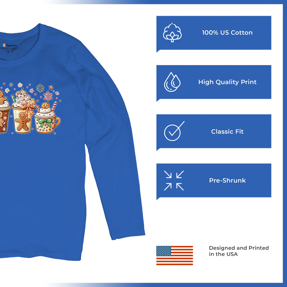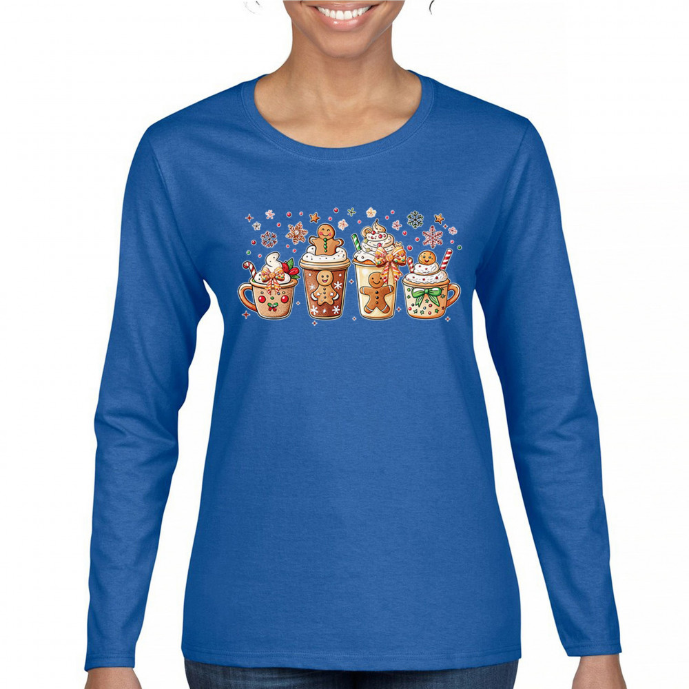 This cute Christmas drink design showcases gingerbread mugs, whipped cream, candy canes, sprinkles, and festive decorations for a warm winter aesthetic. Perfect for cocoa lovers, coffee fans, bakers, cozy holiday nights, gift exchanges, Christmas morning vibes, seasonal parties, and anyone who loves adorable dessert-inspired holiday art.