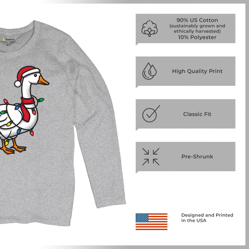 This festive Christmas goose wrapped in bright holiday lights delivers a quirky mix of humor and seasonal charm. Perfect for white elephant exchanges, Secret Santa gifting, or anyone who loves fun holiday graphics. A standout design that blends playful animal humor, cheerful color, and unmistakable Christmas spirit for the entire season.