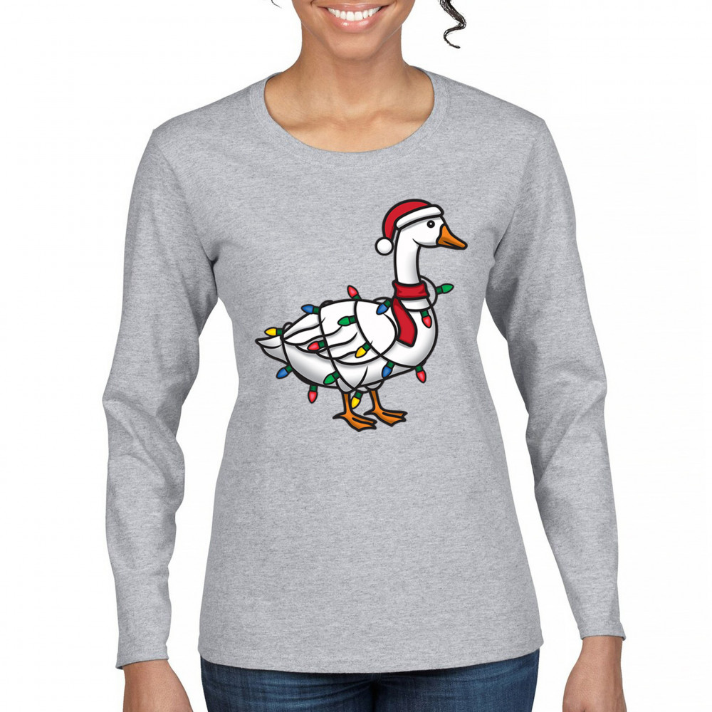 Funny Christmas goose wrapped in lights with festive humor, perfect for holiday gifting, white elephant exchanges, and cheerful seasonal style.