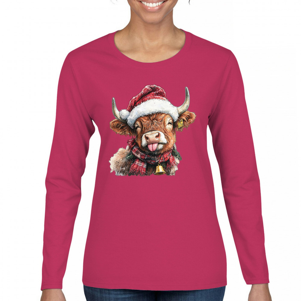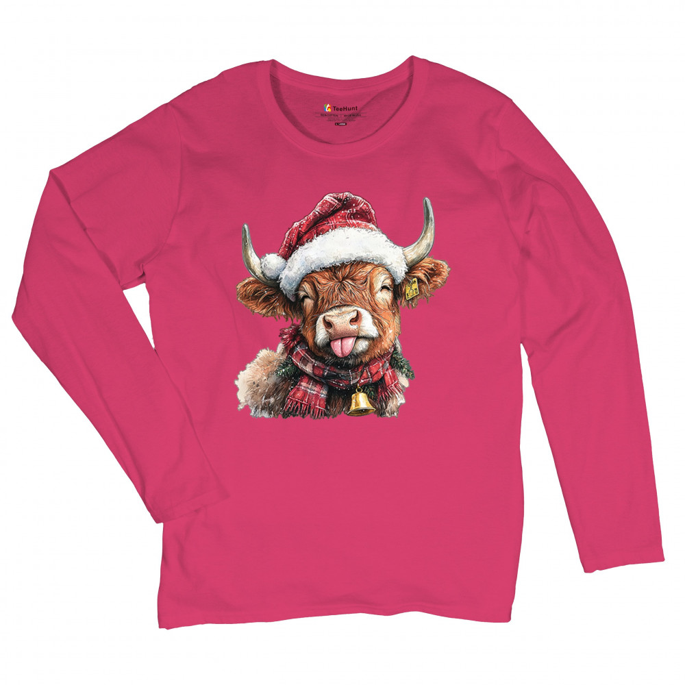 Christmas Highland Cow shirt – rustic holiday design with Santa hat cow, farmhouse holiday humor, country Christmas vibes, and festive livestock art.