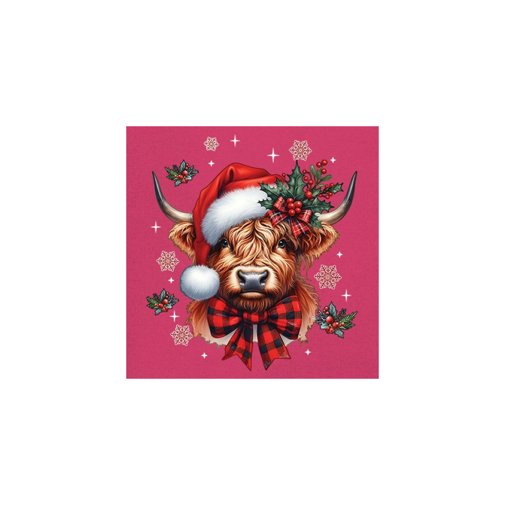 This adorable Highland cow Christmas design blends farmhouse charm, rustic holiday style, and classic winter décor. With a Santa hat, plaid bow, holly, and snowflakes, it delivers warm festive energy that fits perfectly with country décor, woodland themes, cozy farm aesthetics, holiday gifting, and seasonal celebrations. Ideal for fans of cute animals and cheerful Christmas graphics.c