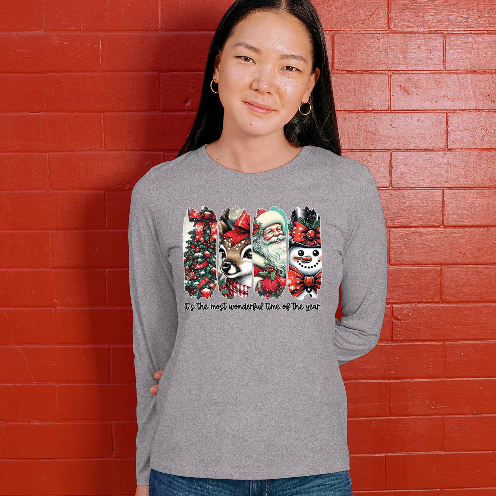 This Christmas design blends a decorated tree, sweet reindeer, vintage Santa, and a bright snowman for a classic seasonal look. Ideal for holiday lovers, winter gatherings, festive parties, gift exchanges, Christmas morning, and anyone who enjoys cheerful, nostalgic holiday art. A warm, eye-catching design that brings out the magic of the season.