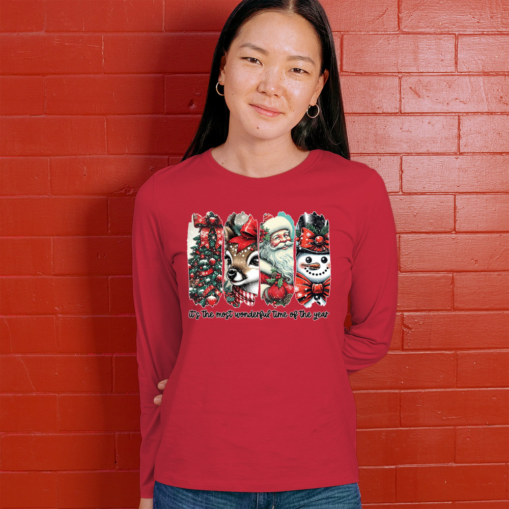 This Christmas design blends a decorated tree, sweet reindeer, vintage Santa, and a bright snowman for a classic seasonal look. Ideal for holiday lovers, winter gatherings, festive parties, gift exchanges, Christmas morning, and anyone who enjoys cheerful, nostalgic holiday art. A warm, eye-catching design that brings out the magic of the season.