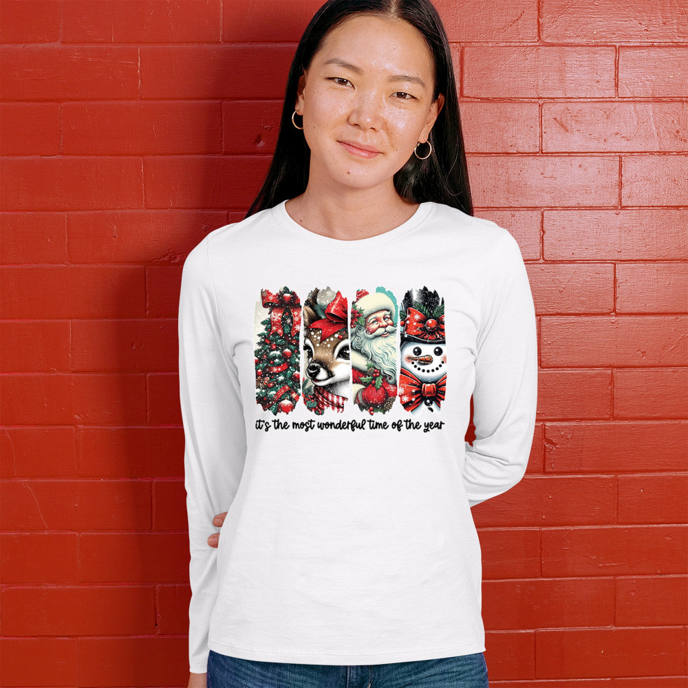 This Christmas design blends a decorated tree, sweet reindeer, vintage Santa, and a bright snowman for a classic seasonal look. Ideal for holiday lovers, winter gatherings, festive parties, gift exchanges, Christmas morning, and anyone who enjoys cheerful, nostalgic holiday art. A warm, eye-catching design that brings out the magic of the season.