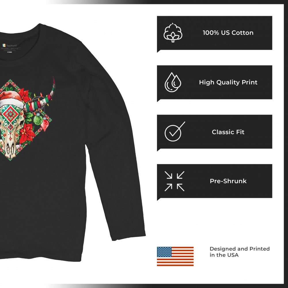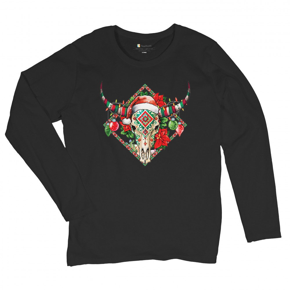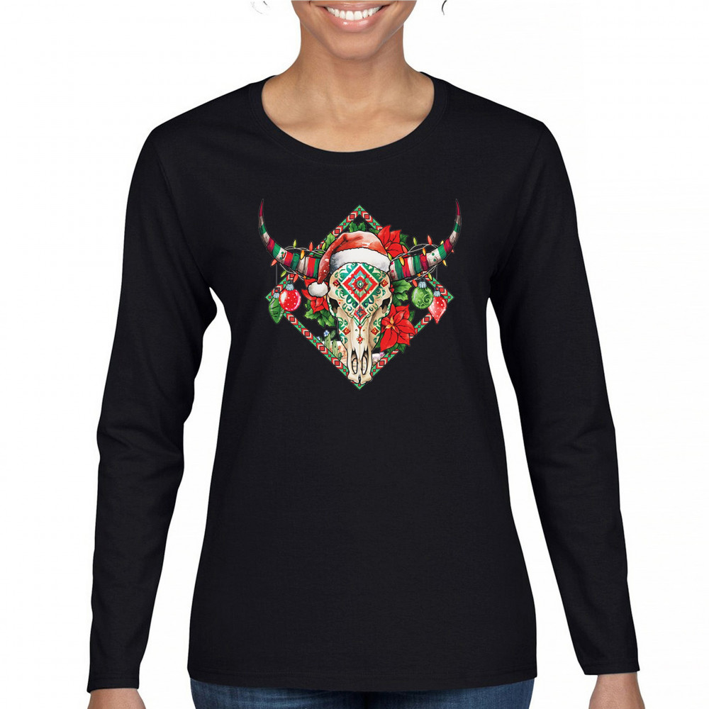 Blend Southwestern charm with holiday cheer! This vibrant skull design with poinsettias and ornaments is perfect for festive parties and unique gifts!