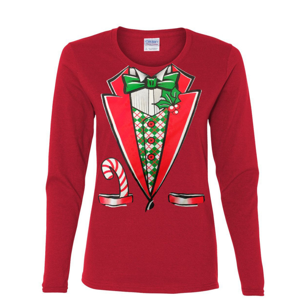 CHRISTMAS TUXEDO long sleeve t-shirt funny xmas santa elf red
