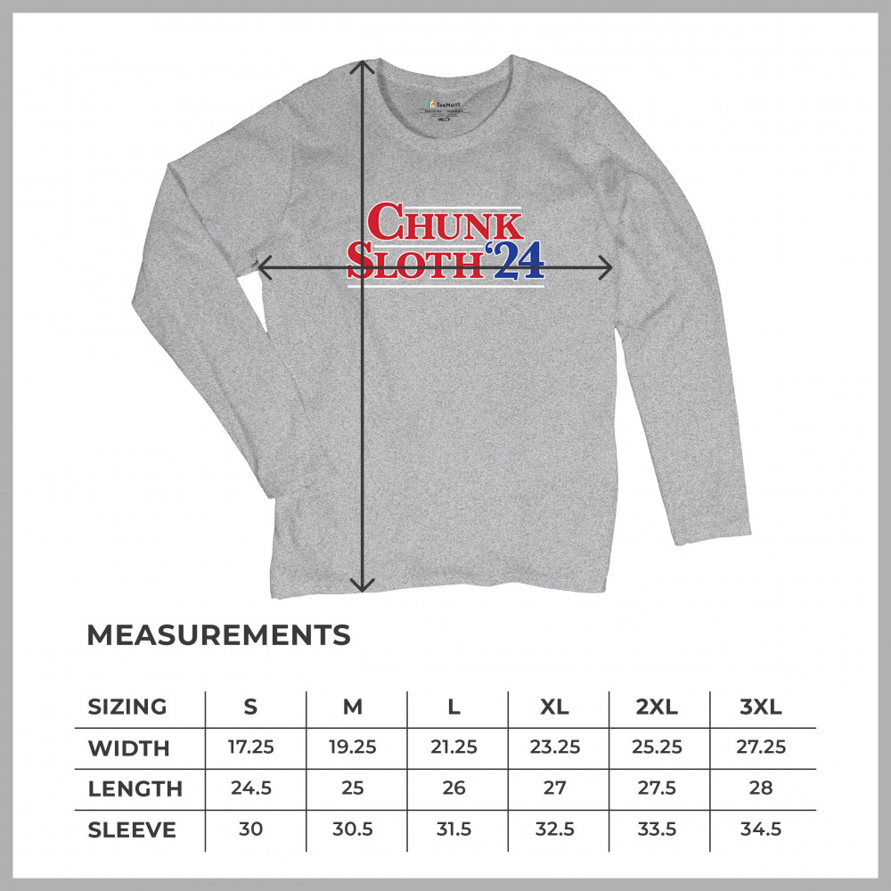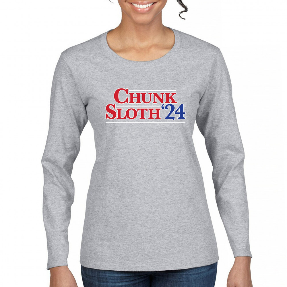 Celebrate 80s nostalgia and political humor with our Chunk and Sloth '24 design. Perfect for casual wear, movie nights, and themed parties. Durable and stylish.