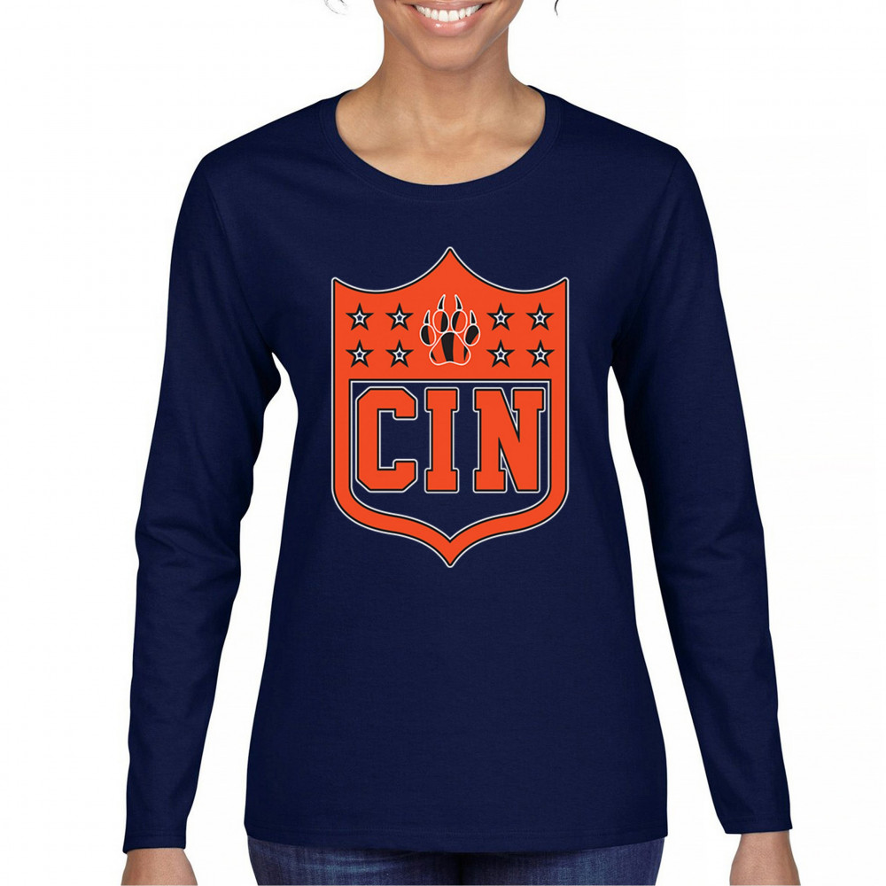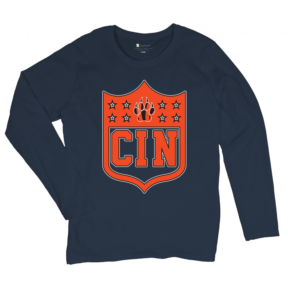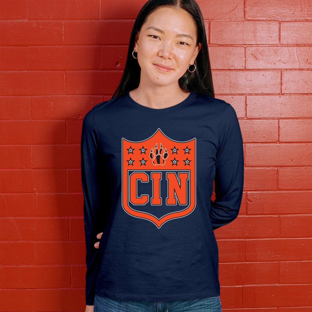 Bold CIN paw shield for Cincinnati football fans. Retro crest style, underdog spirit, and vintage game day gear for true Cincinnati grit.