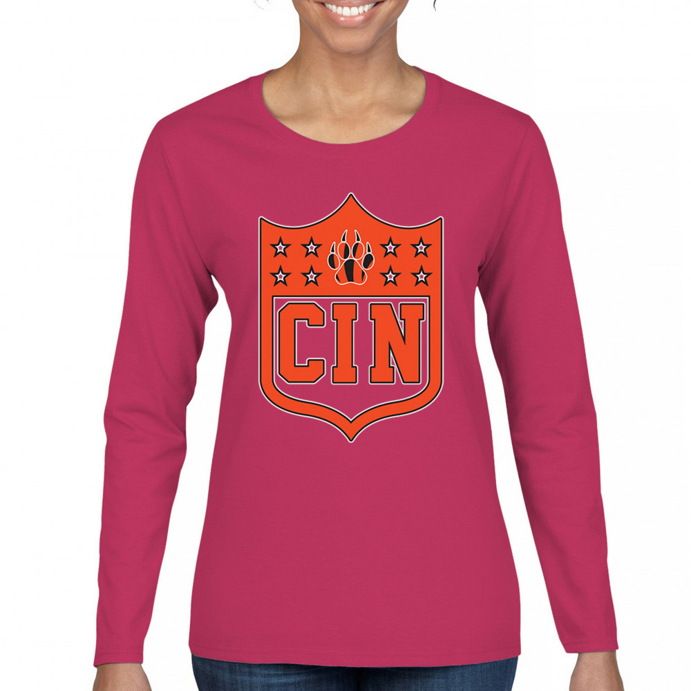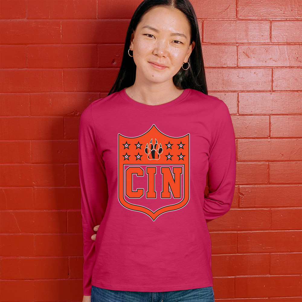 Bold CIN paw shield for Cincinnati football fans. Retro crest style, underdog spirit, and vintage game day gear for true Cincinnati grit.