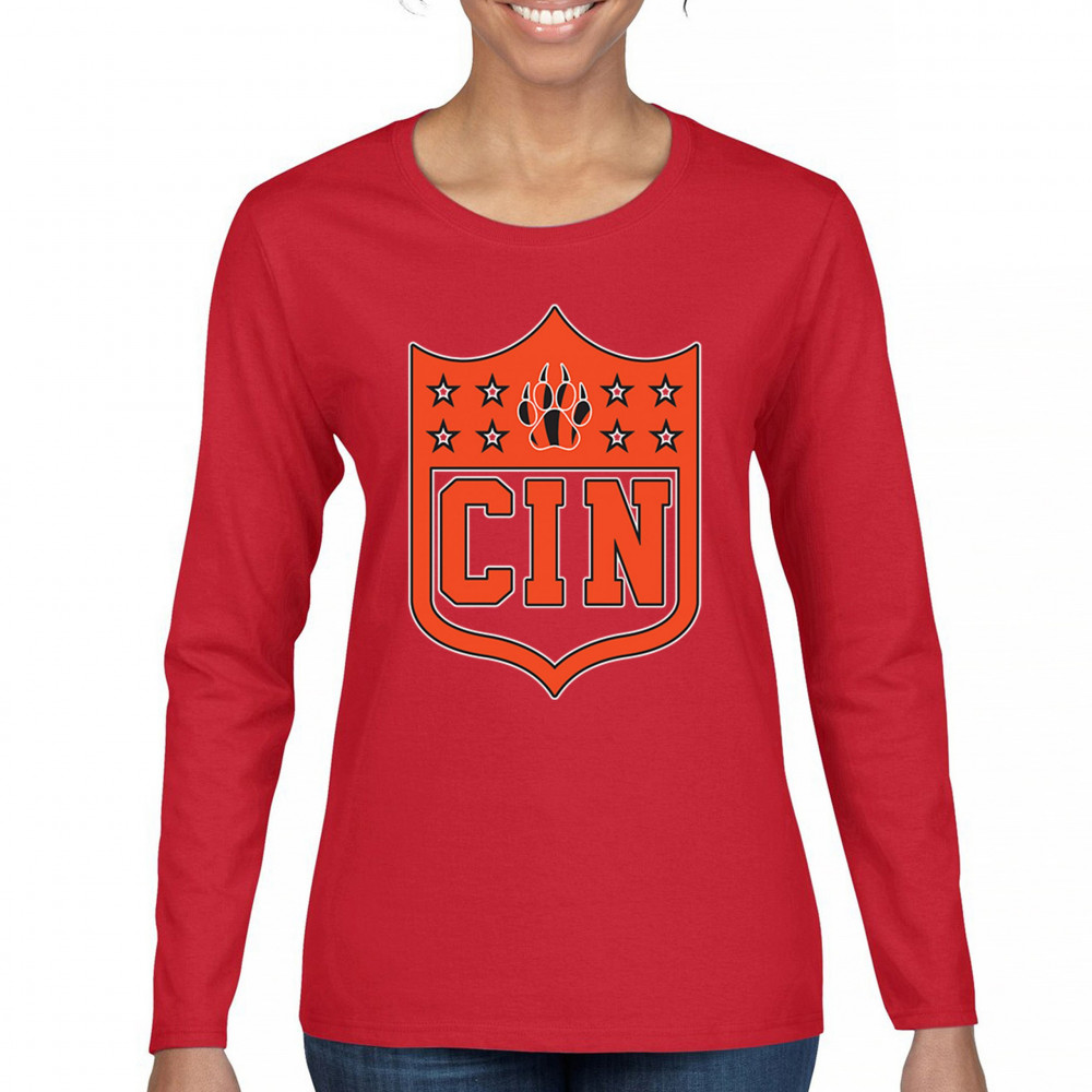 Celebrate your love for Cincinnati football with this CIN shield paw design, blending retro football crest style with vintage football culture. Perfect for Cincinnati sports culture, Cincinnati champions, and Cincinnati football nation, this design embodies underdog spirit, Cincinnati grit, and college football culture. A bold look for Saturday football vibes, Sunday football, and every big game.