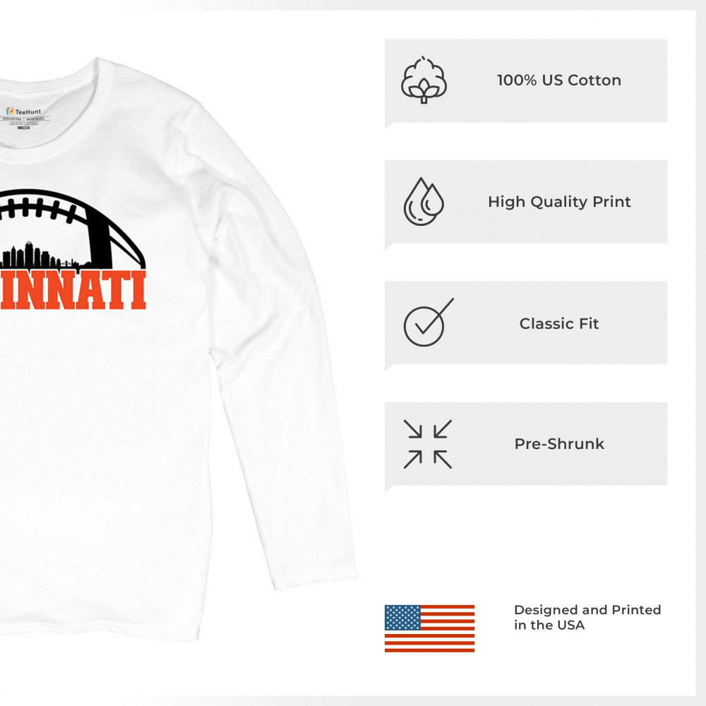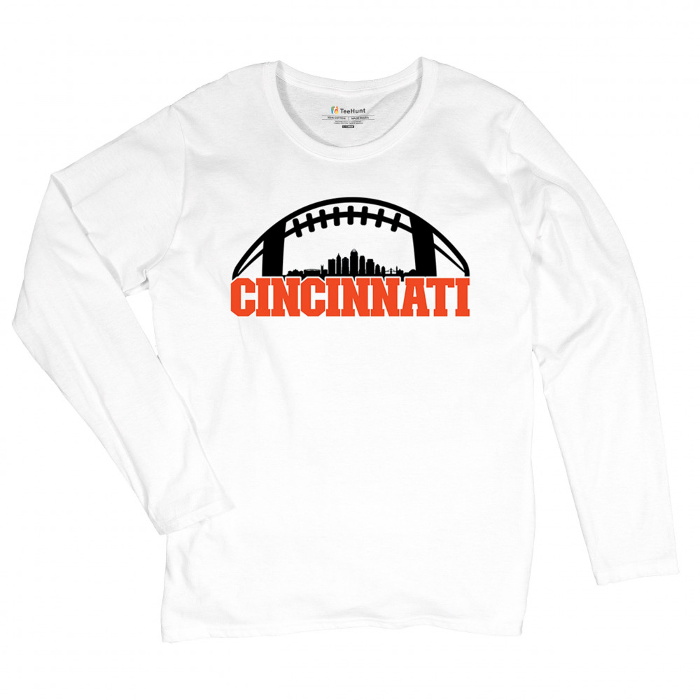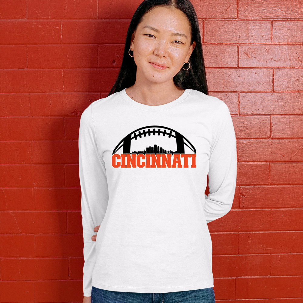 Celebrate Cincinnati and football with this bold skyline design under a football arch. Perfect for fans, tailgates, and game days!