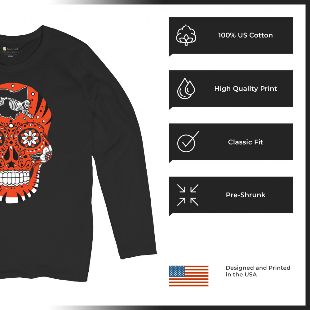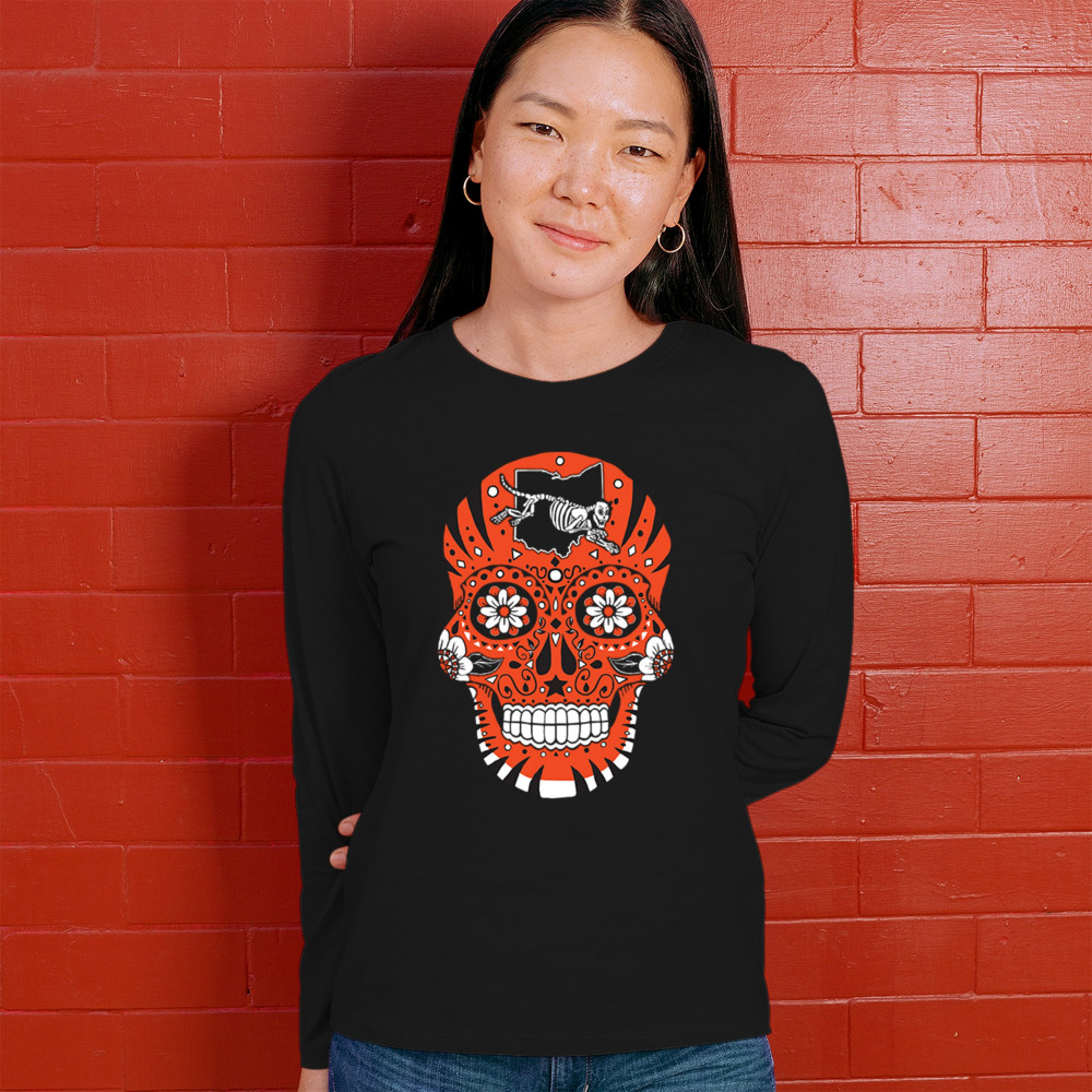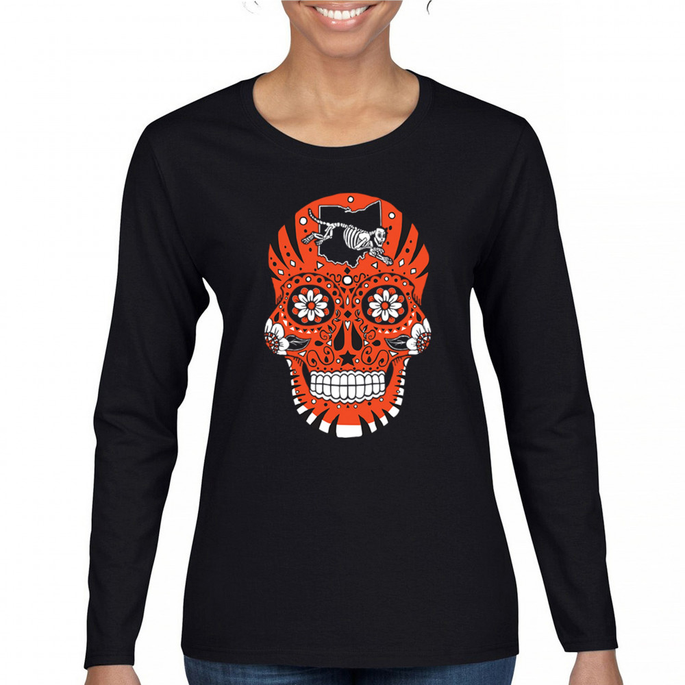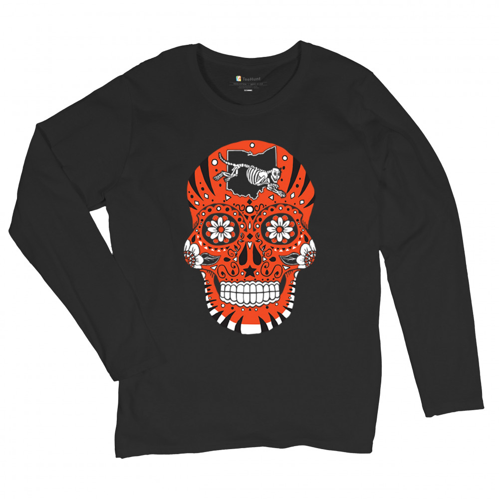 CINCINNATI SUGAR SKULL women's long sleeve t-shirt die-hard football tailgating black