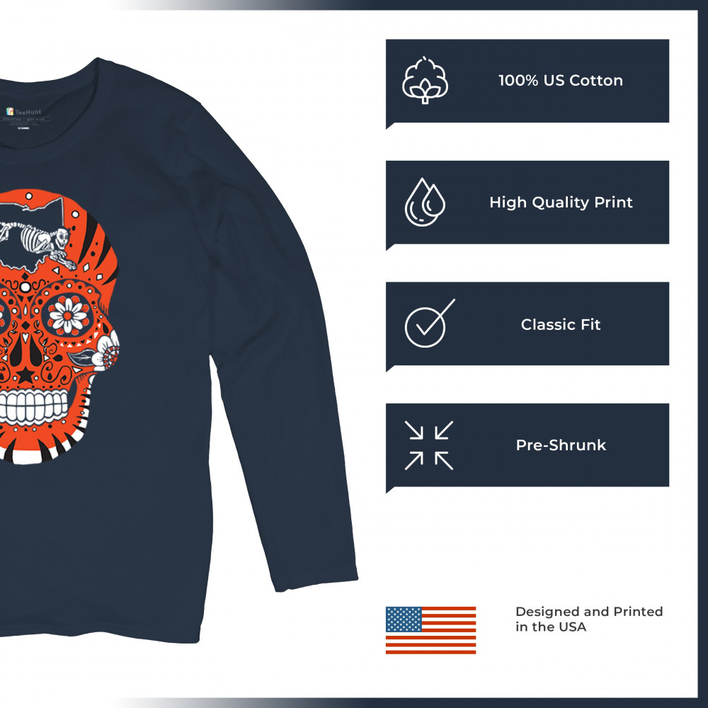 Celebrate Cincinnati football with this Sugar Skull design featuring the Queen City Paw. With underdog grit, black & orange pride, and Saturday football culture, it’s made for Game Day excitement, playoff energy, and fantasy league rivalries. A bold calavera for passionate Cincinnati fans.
