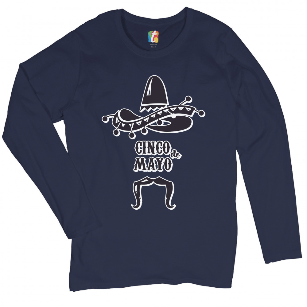 CINCO DE MAYO women's long sleeve t-shirt party sombrero mexican culture fiesta navy blue
