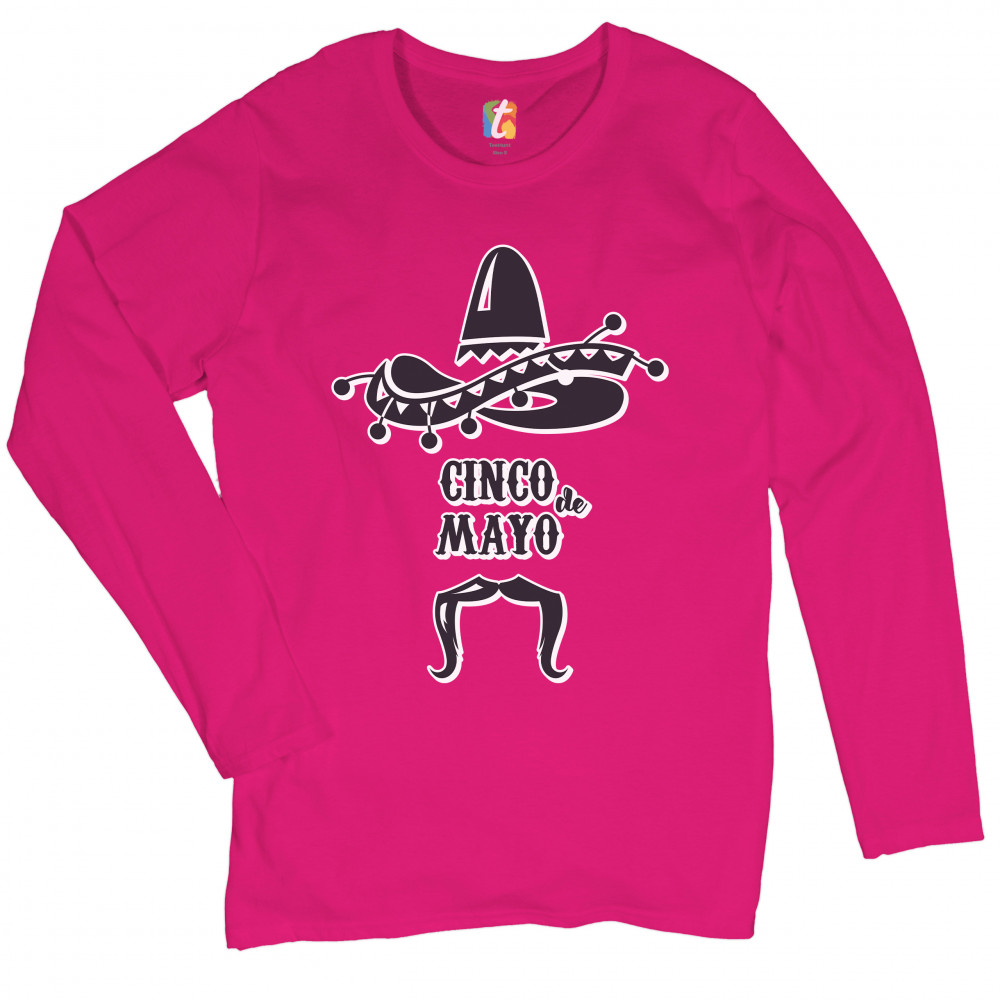 CINCO DE MAYO women's long sleeve t-shirt party sombrero mexican culture fiesta hot pink