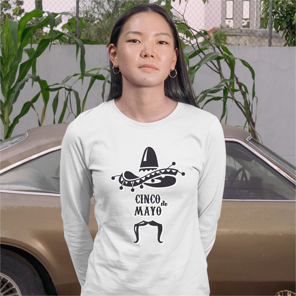 CINCO DE MAYO women's long sleeve t-shirt party sombrero mexican culture fiesta white