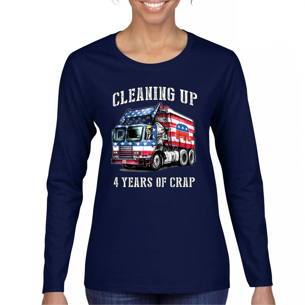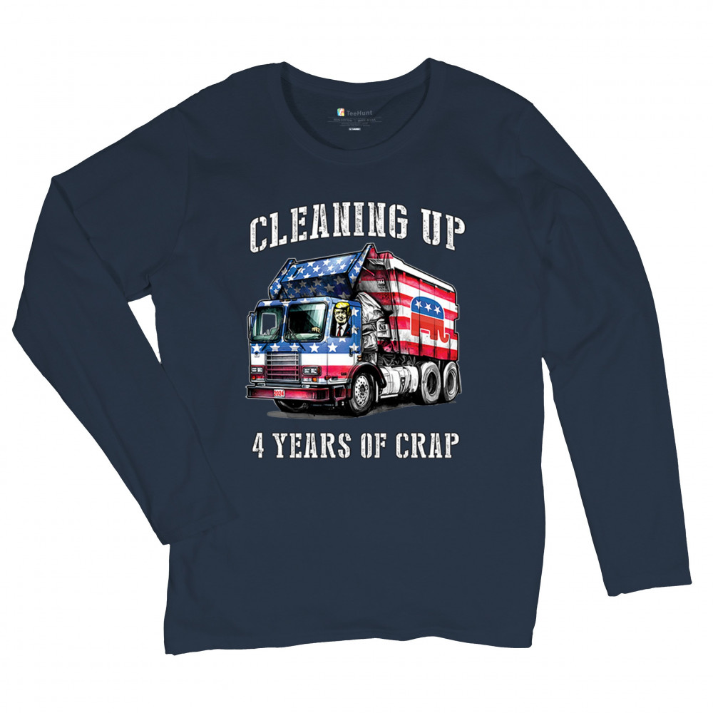 Bold "Cleaning Up 4 Years of Crap" design featuring Trump, the GOP, and the American flag. Perfect for proud conservatives and patriots.