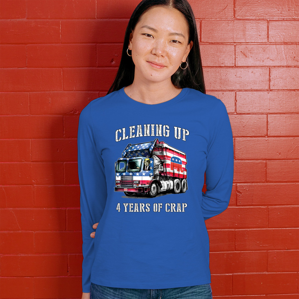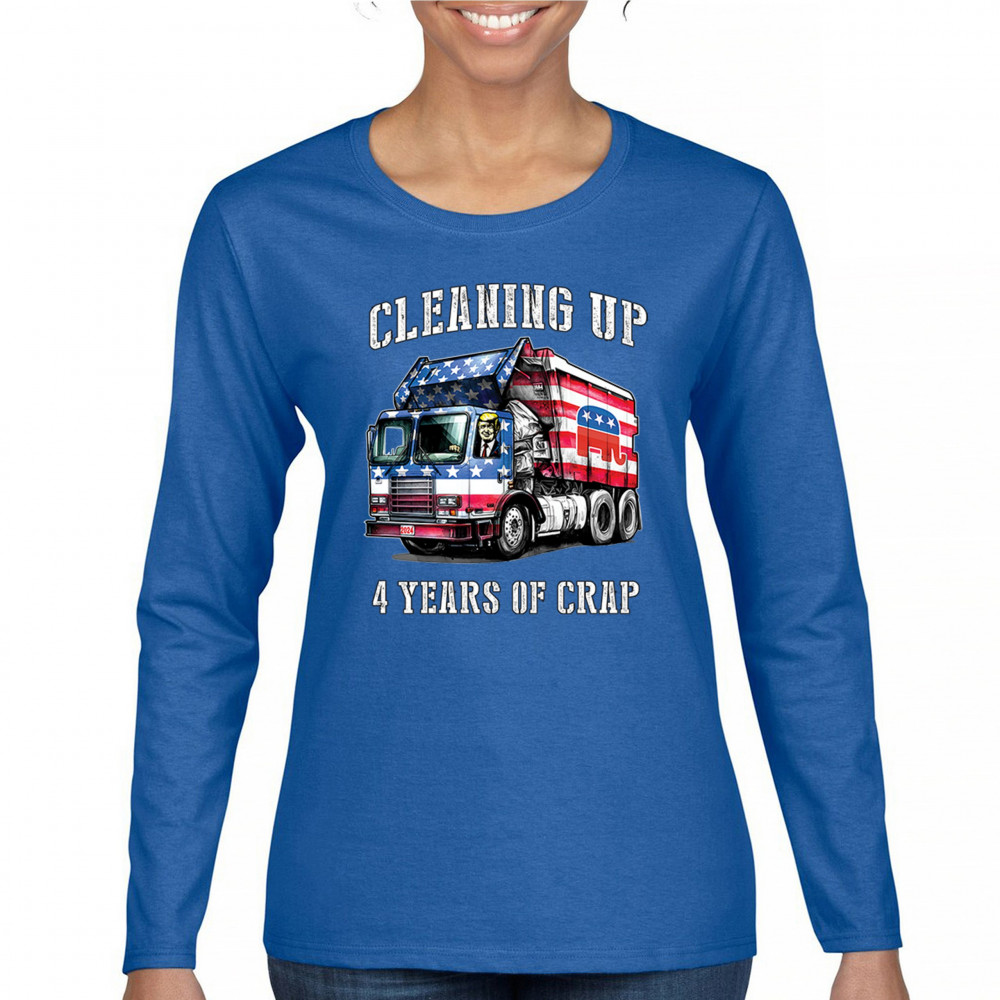 Bold "Cleaning Up 4 Years of Crap" design featuring Trump, the GOP, and the American flag. Perfect for proud conservatives and patriots.