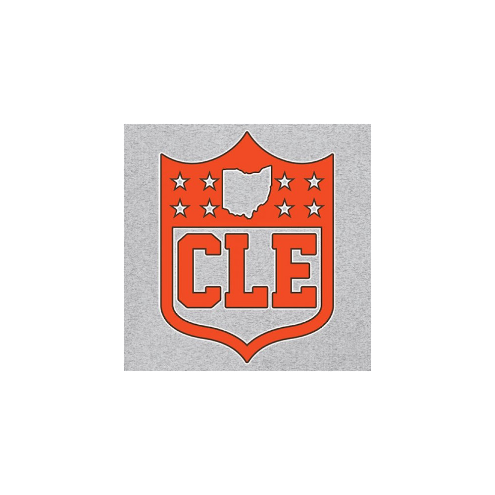 Bold CLE shield design honoring Cleveland football nation with Rust Belt pride, underdog grit, and blue collar sports heritage.