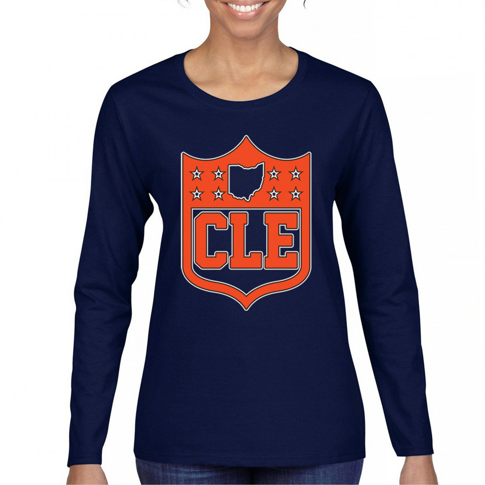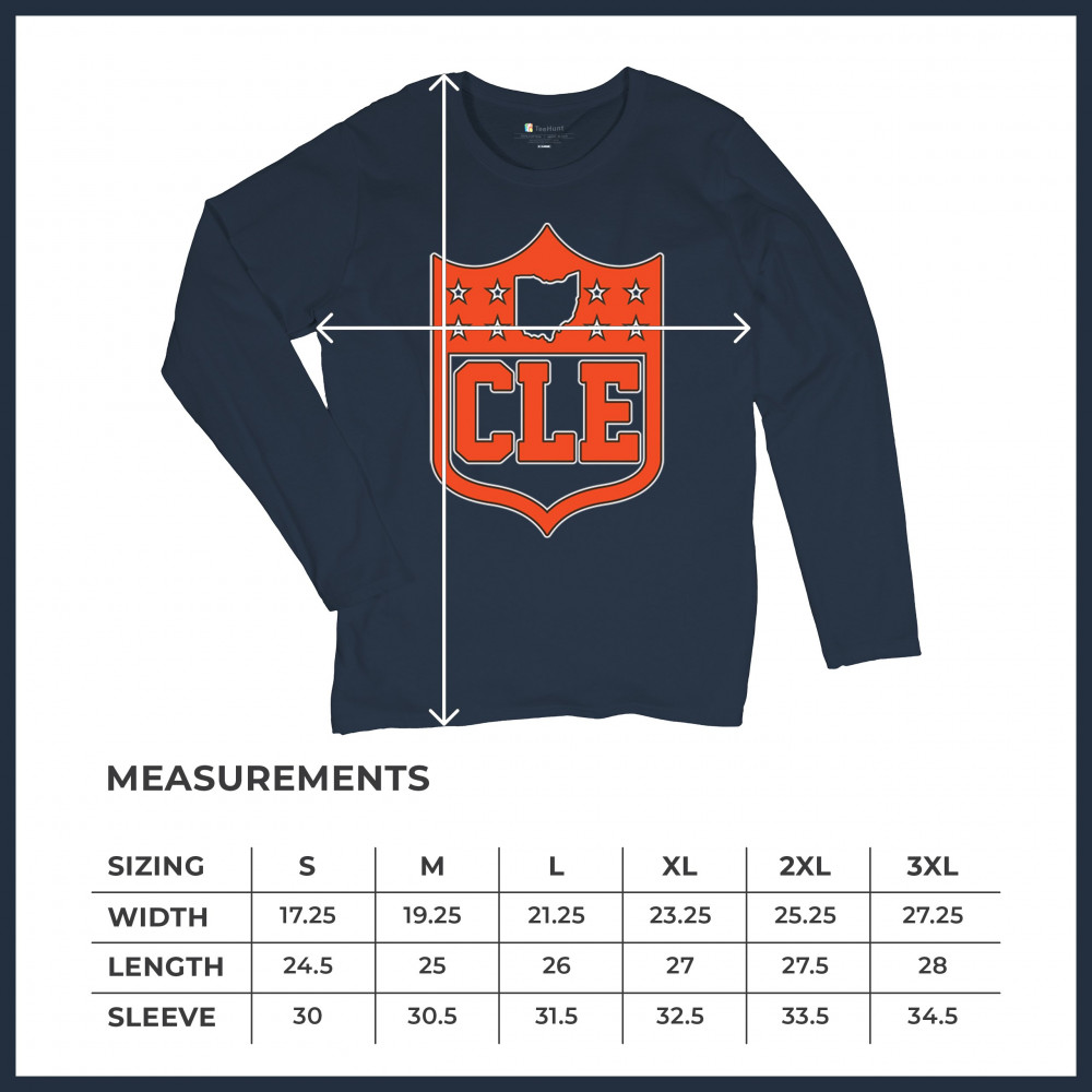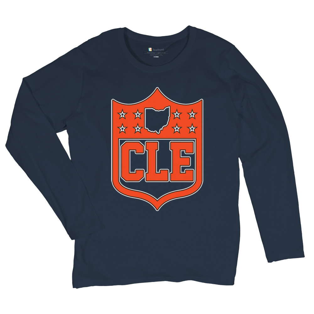 Bold CLE shield design honoring Cleveland football nation with Rust Belt pride, underdog grit, and blue collar sports heritage.