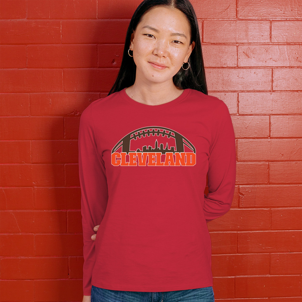 Unleash your Cleveland spirit with this standout football-themed design, featuring the city's skyline in bold detail. Ideal for game day celebrations, tailgate parties, or casual wear, this design embodies the energy and pride of Cleveland's sports culture. Whether you're a lifelong fan or just love the city's vibe, this is a must-have for every Cleveland supporter.