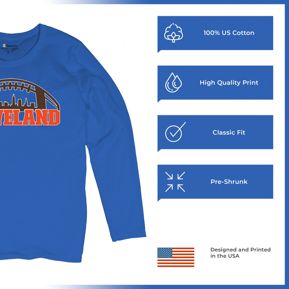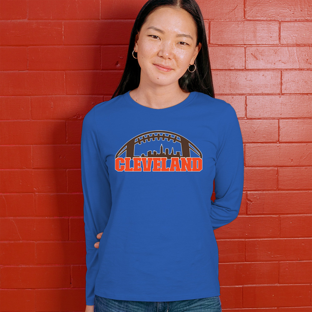 Unleash your Cleveland spirit with this standout football-themed design, featuring the city's skyline in bold detail. Ideal for game day celebrations, tailgate parties, or casual wear, this design embodies the energy and pride of Cleveland's sports culture. Whether you're a lifelong fan or just love the city's vibe, this is a must-have for every Cleveland supporter.