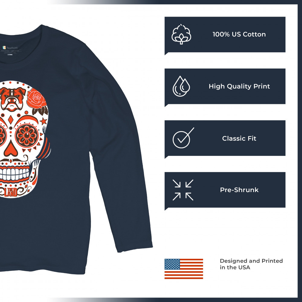 Cleveland football fans can celebrate with this bold Sugar Skull design. Featuring Lake Erie pride, Rust Belt football, and orange & brown heritage, it captures the city’s blue-collar grit and Game Day passion. A perfect calavera for fantasy leagues, playoff energy, and die-hard fan traditions.