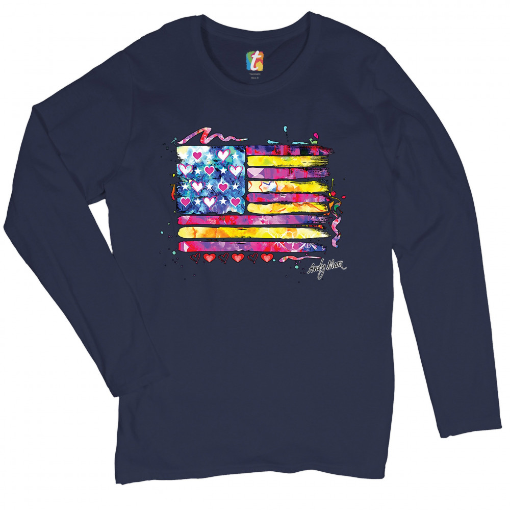 COLORFUL AMERICAN FLAG women's long sleeve t-shirt patriotic 4th of july usa navy blue