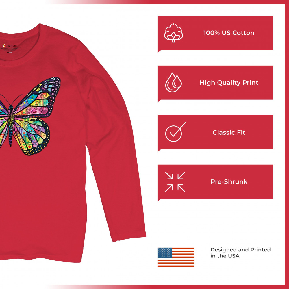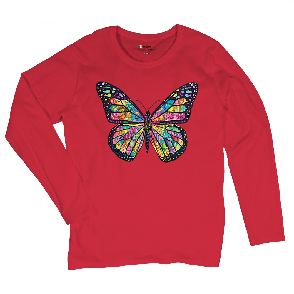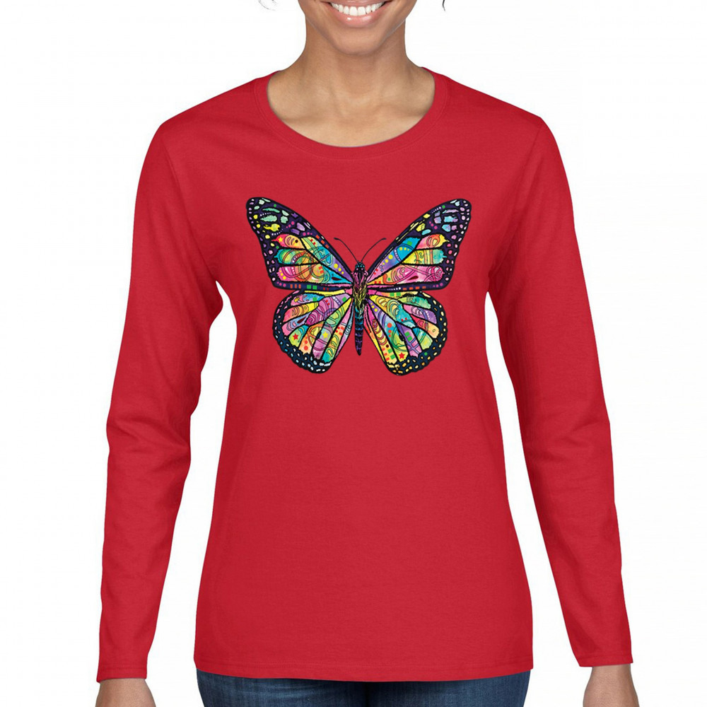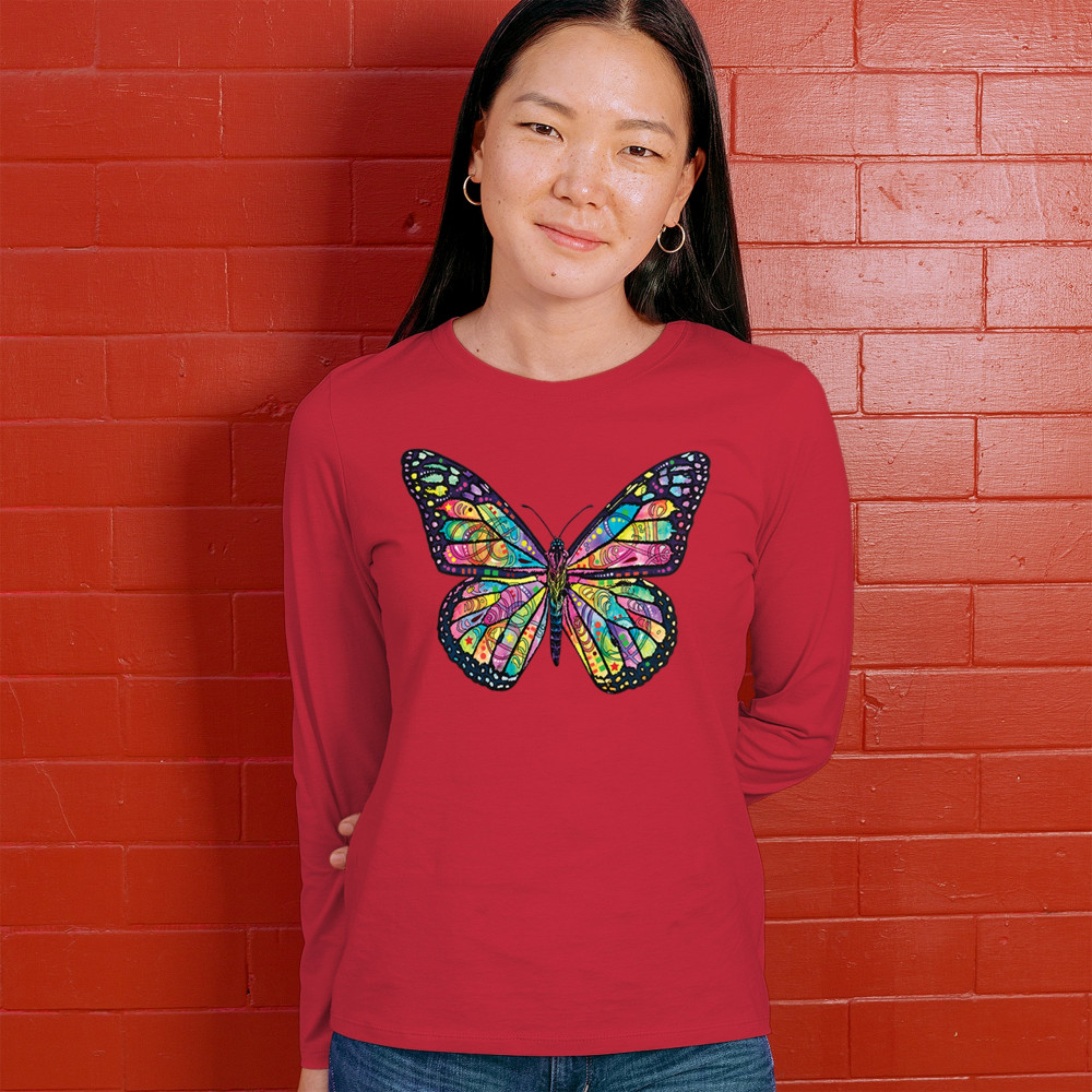 COLORFUL NEON BUTTERFLY women's long sleeve t-shirt dean russo beautiful nature red