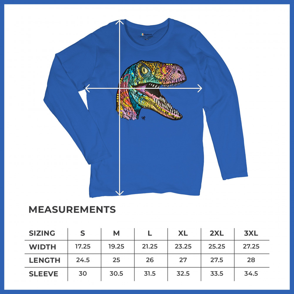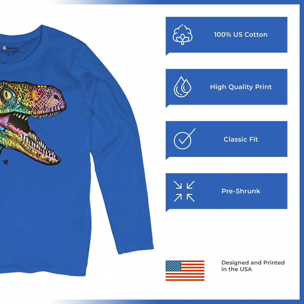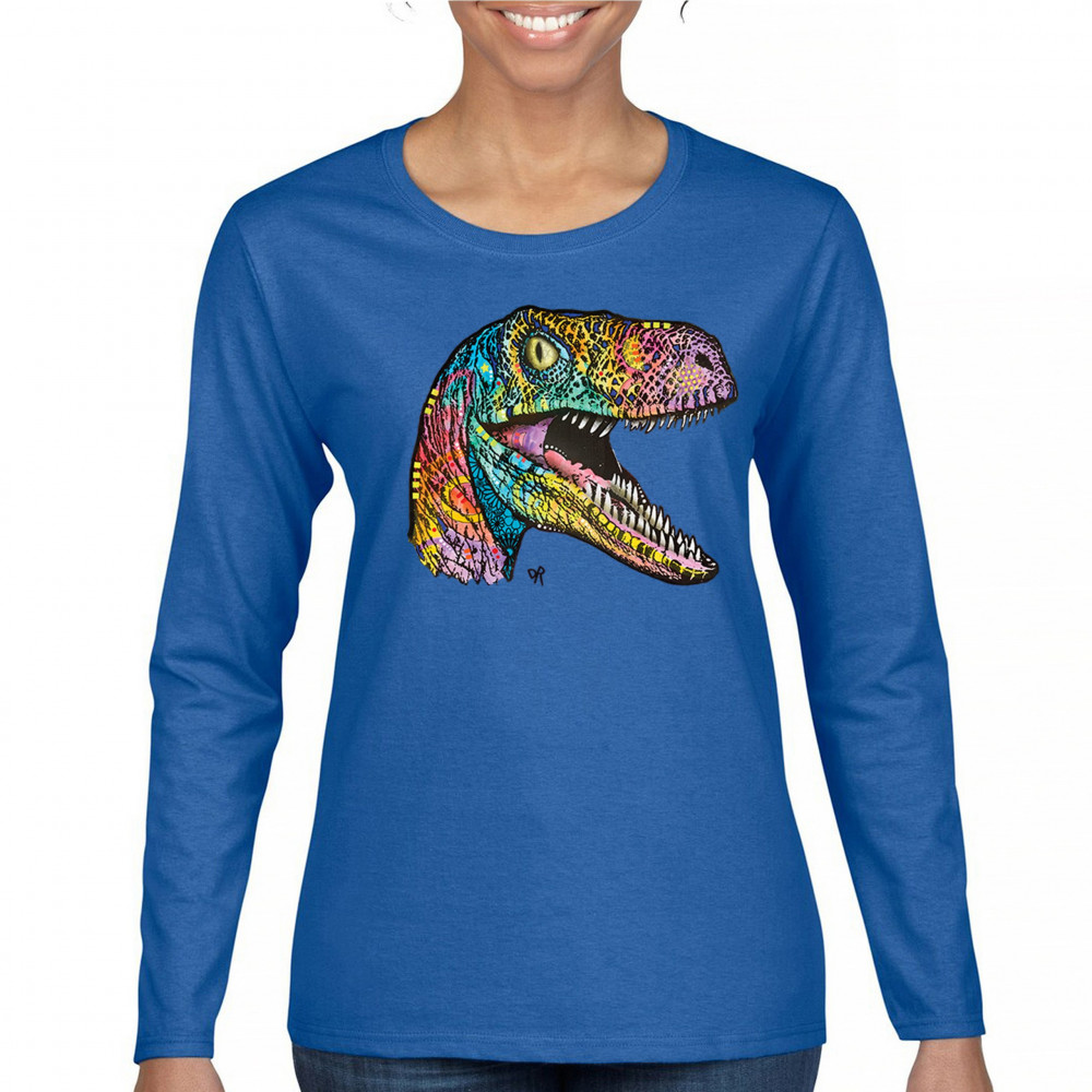 COLORFUL RAPTOR women's long sleeve t-shirt dean russo neon dinosaur royal blue