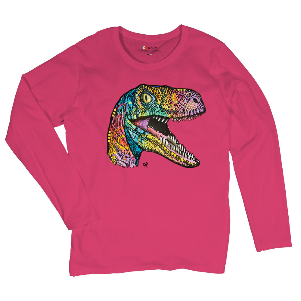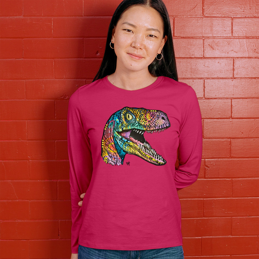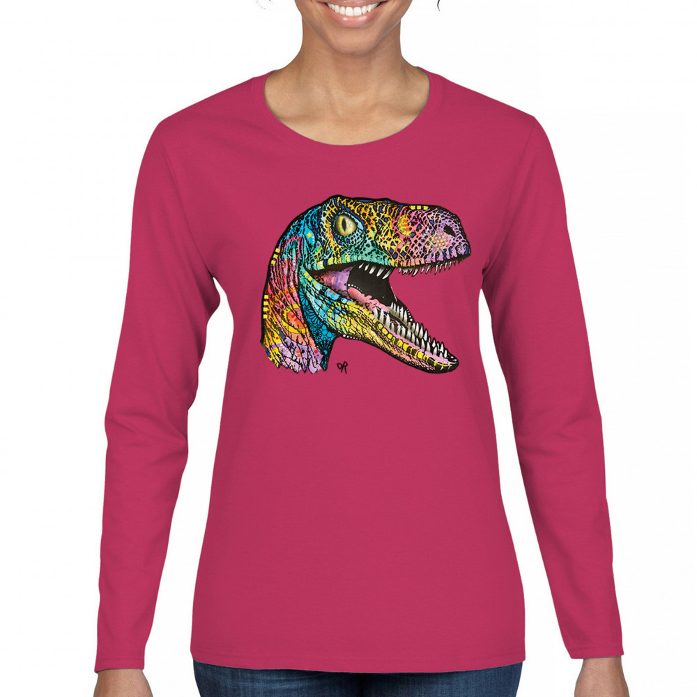 COLORFUL RAPTOR women's long sleeve t-shirt dean russo neon dinosaur pink