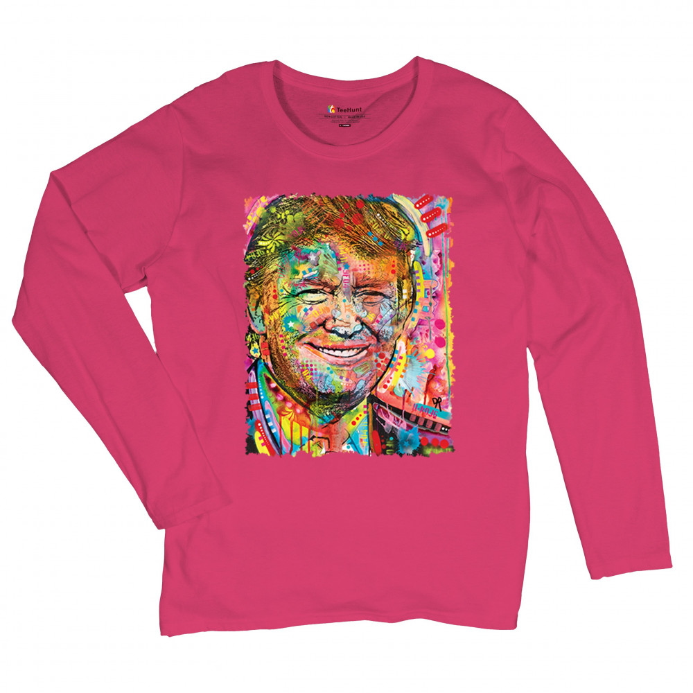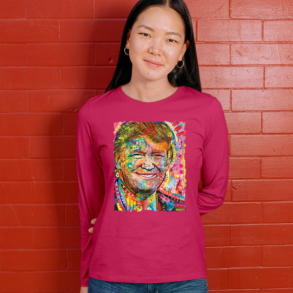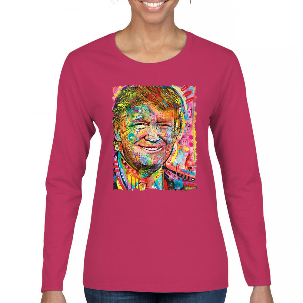 DEAN RUSSO COLORFUL TRUMP colorful trump women's long sleeve t-shirt dean russo 45 american president 2024 pink