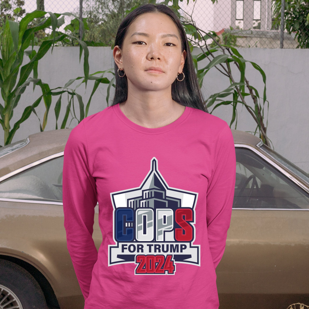 COPS FOR TRUMP women's long sleeve t-shirt keep america great donald trump 2024 pink