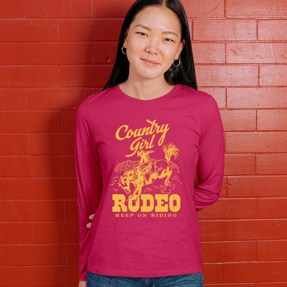 Celebrate cowgirl spirit with this bold design featuring a fearless rider holding strong in classic rodeo fashion. Built for western women who embrace rural life, horse riding, and country toughness. Whether it's for fairs, rodeos, or music nights, this design rides with you.